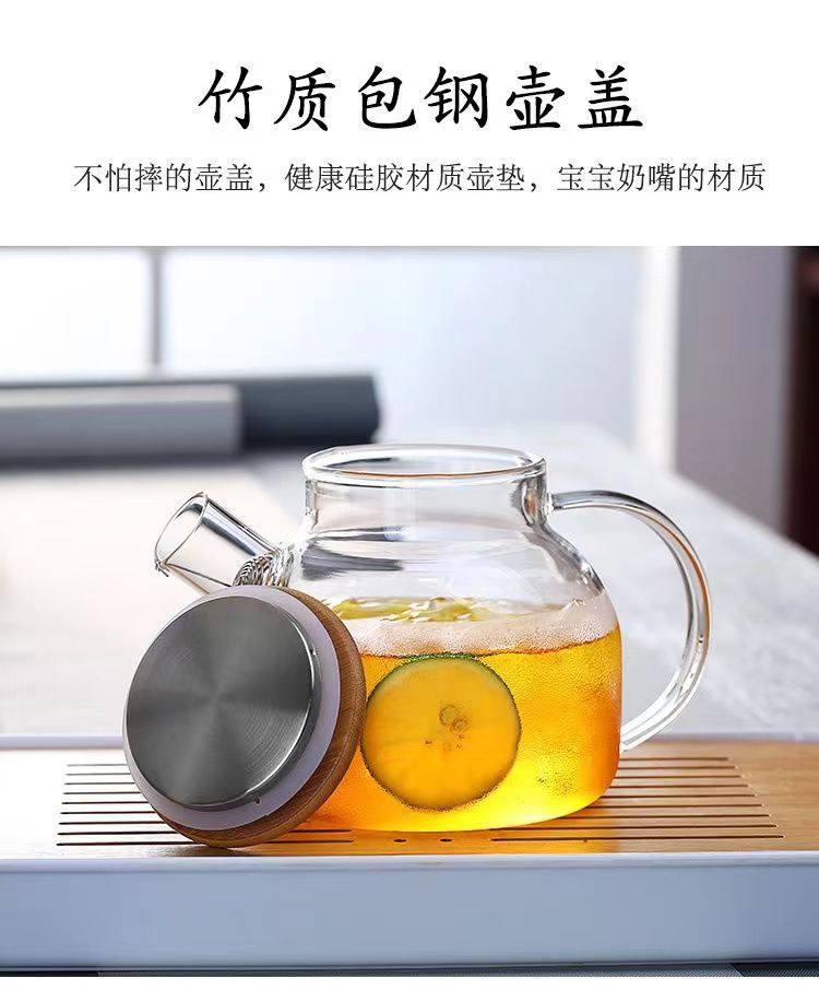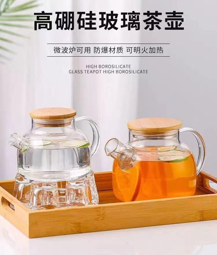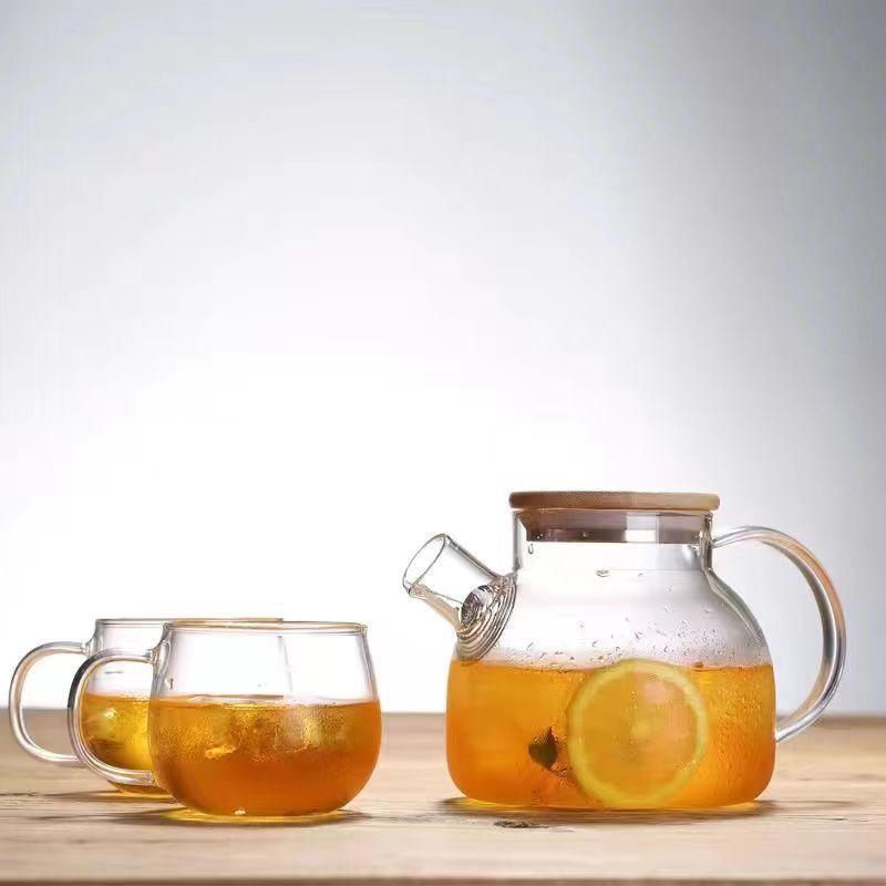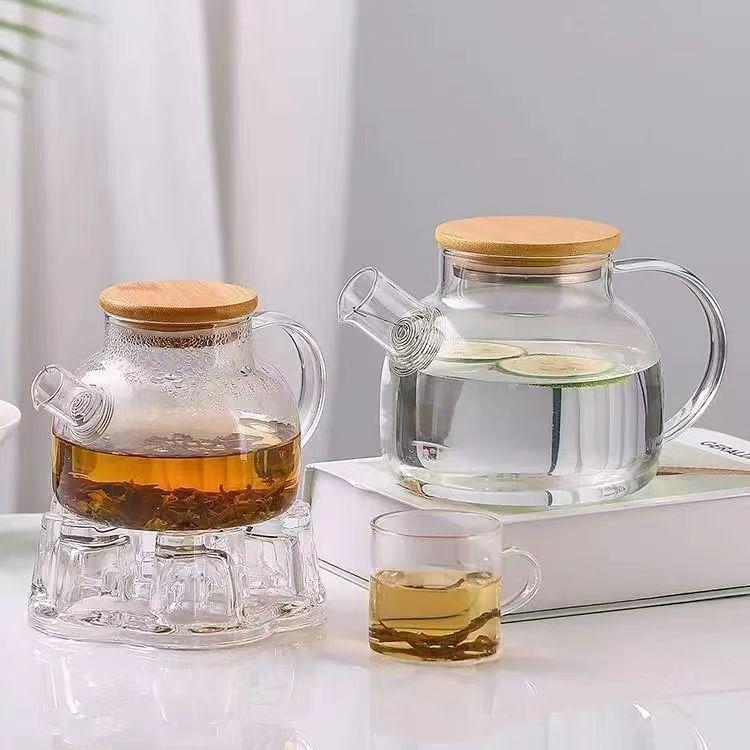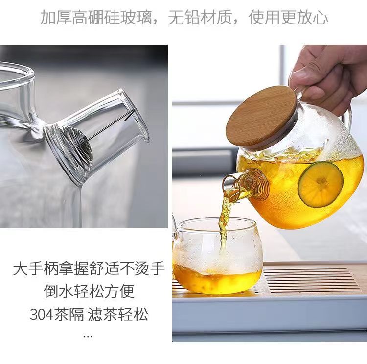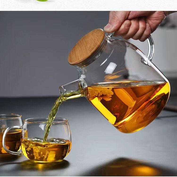 Bule de bambu de grande capacidade, bule de vidro resistente ao calor, chaleira fria de alta temperatura, simples