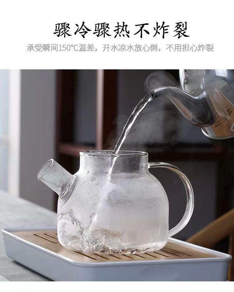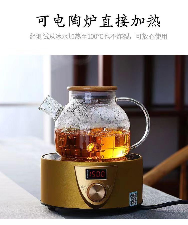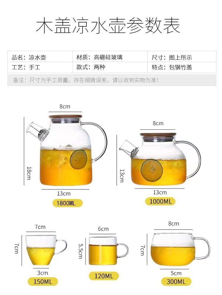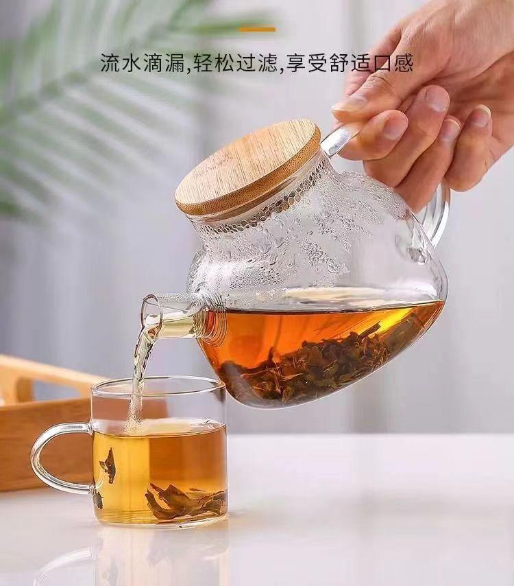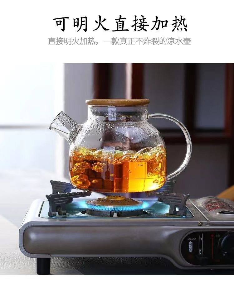 Bule de bambu de grande capacidade, bule de vidro resistente ao calor, chaleira fria de alta temperatura, simples