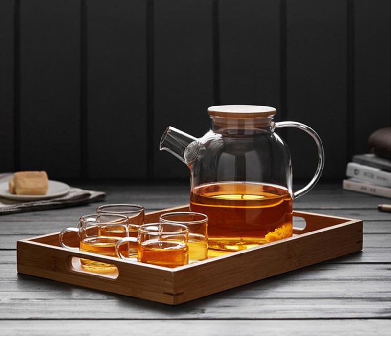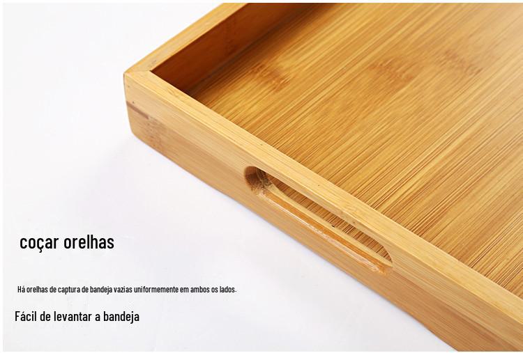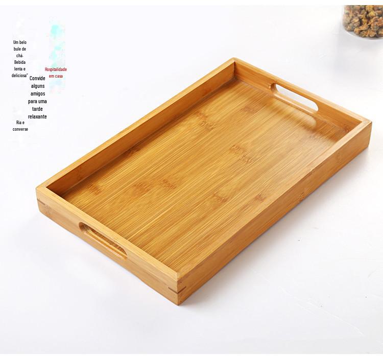 Bandeja de madeira de bambu puro Bandeja de chá Bandeja de madeira simples de tamanho grande e pequeno Bandeja retangular de madeira Conjunto de chá doméstico Bandeja de chá Bandeja de jantar Armazenamento