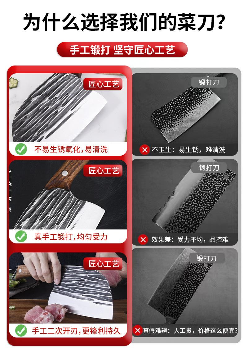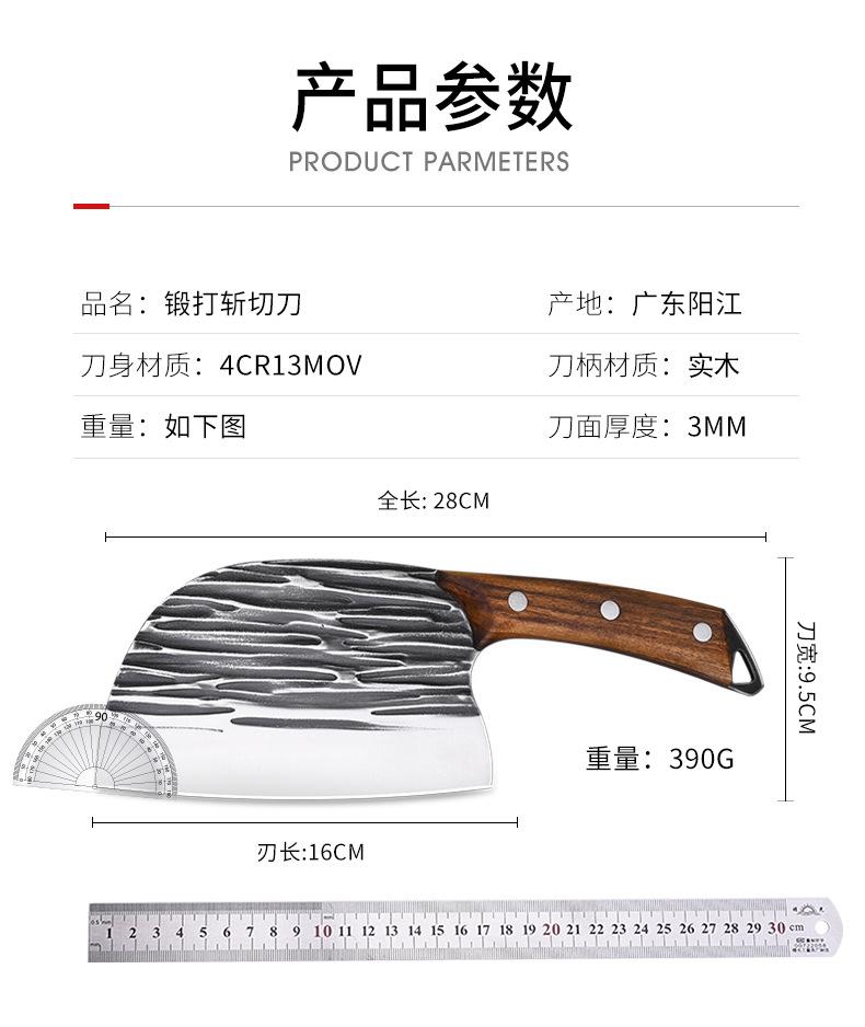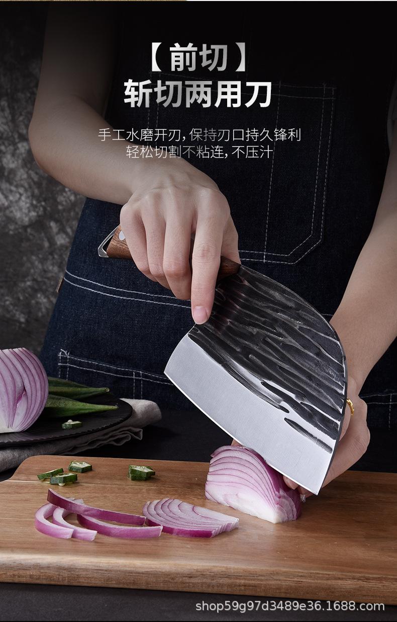 Fabricante de Yangjiang Aço Inoxidável Faca de Cabeça de Peixe Madeira Maciça Forjado Padrão Martelado Cabeça Redonda Estilo Celebridade da Internet Faca de Dupla Finalidade para Picar e Cortar Entrega no Atacado