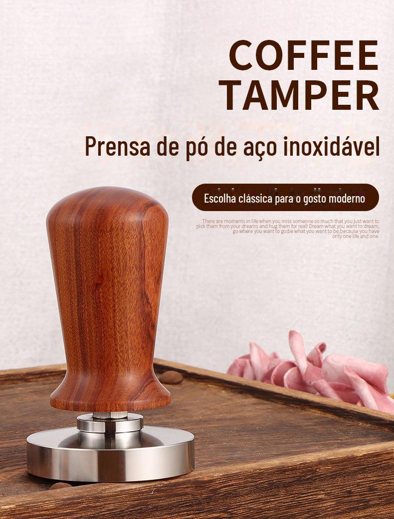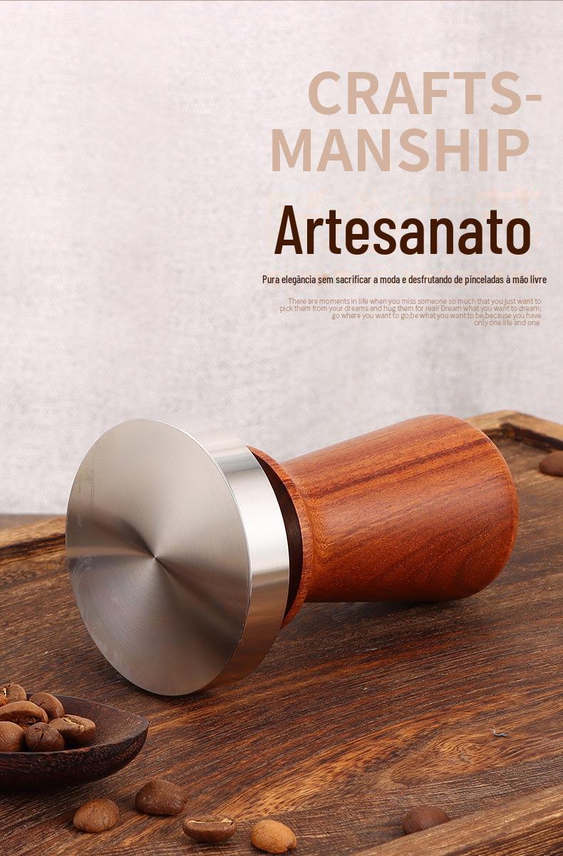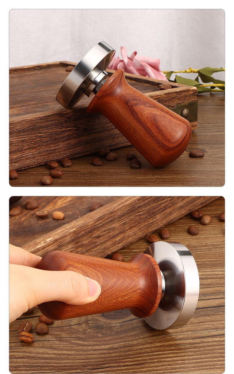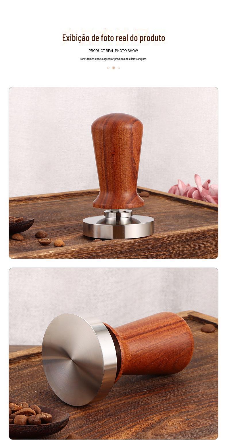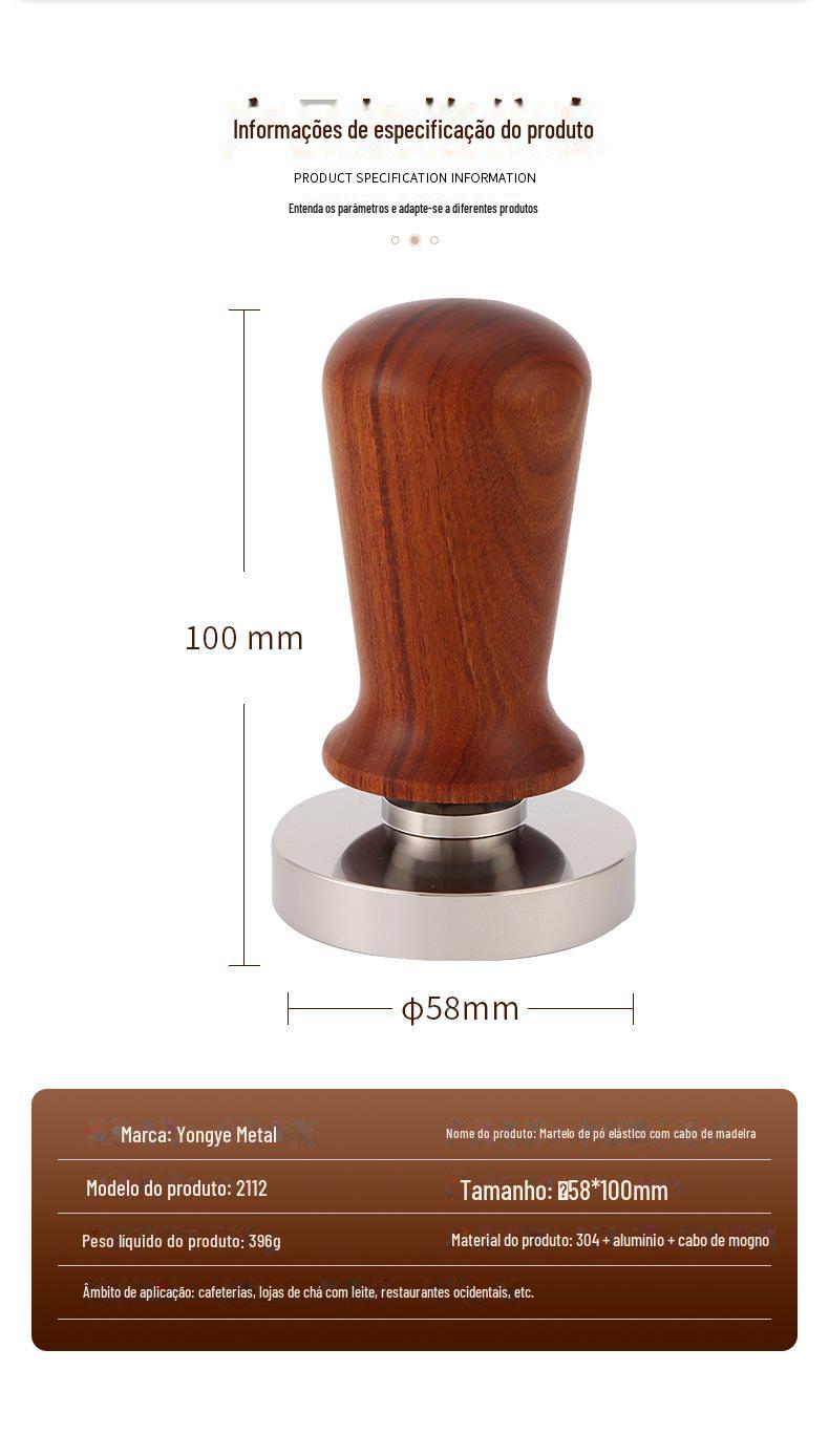 Cabo de madeira elástico pó martelo café pó imprensa aço inoxidável sólido ajuste constante pressão enchimento café pó imprensa martelo
