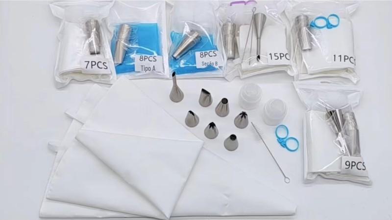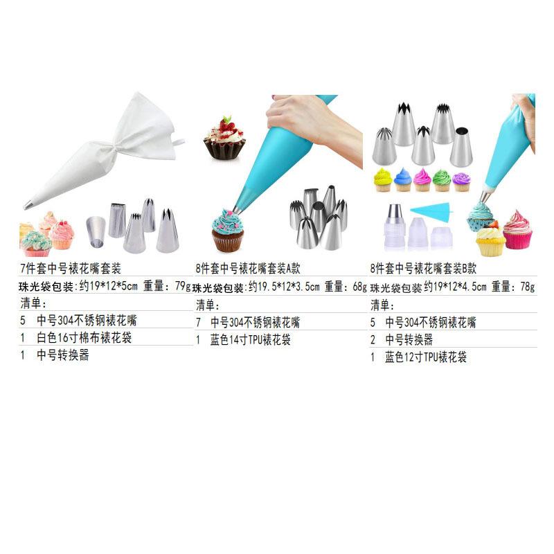 Nome: Conjunto de Bicos de Decoração Médios Material: aço inoxidável 304, pano de algodão, saco de decoração, TPU, silicone,