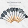 Novo conjunto de utensílios de cozinha de silicone com cabo de madeira, 8 peças, utensílios de cozinha de silicone, espátula doméstica resistente a altas temperaturas