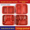 Lancheira descartável, caixa de fast food multicompartimento com tampa, lancheira retangular, caixa de embalagem de compartimento único vermelha e preta, lancheira para viagem;
