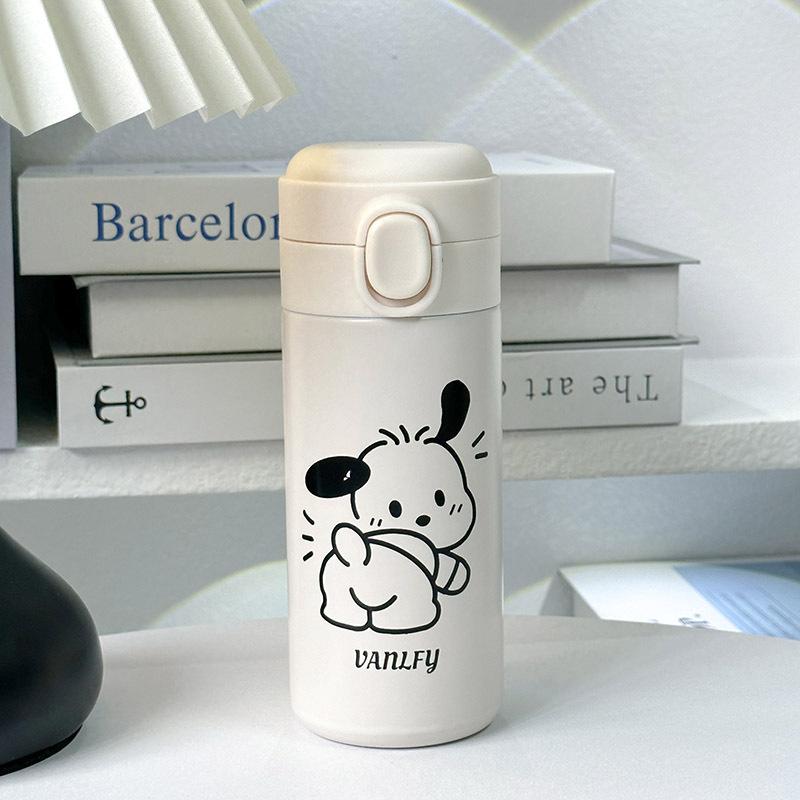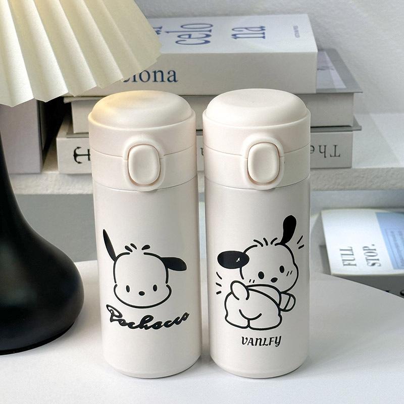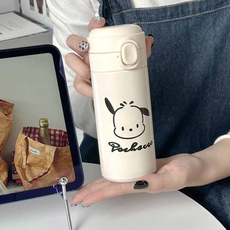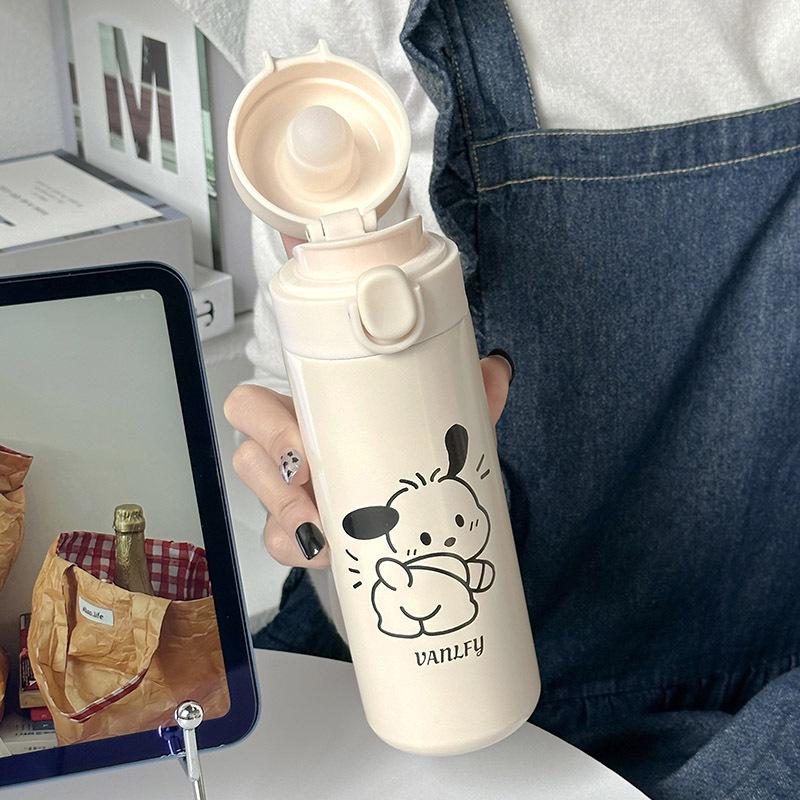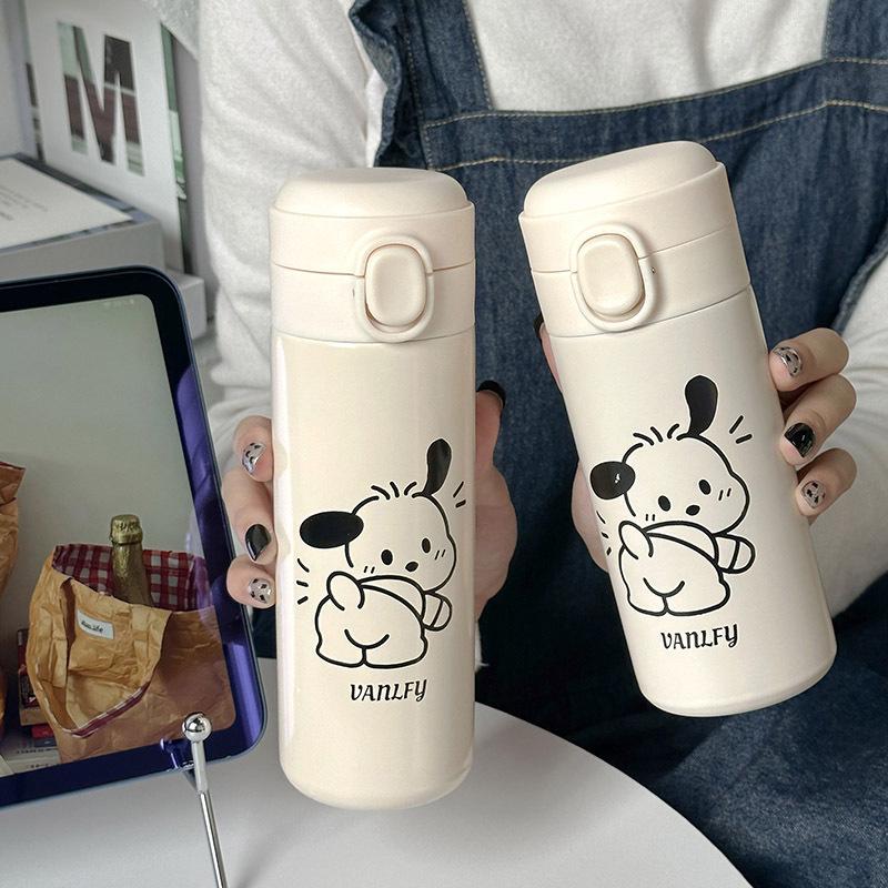 Nova garrafa térmica copo bounce tampa ervilha copo simples masculino e feminino estudante 304 aço inoxidável portátil desenhos animados da moda