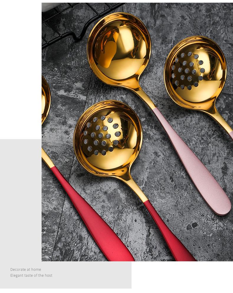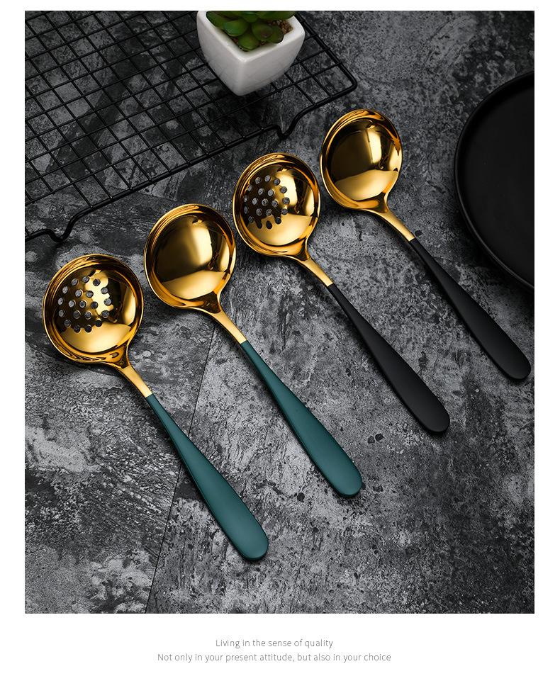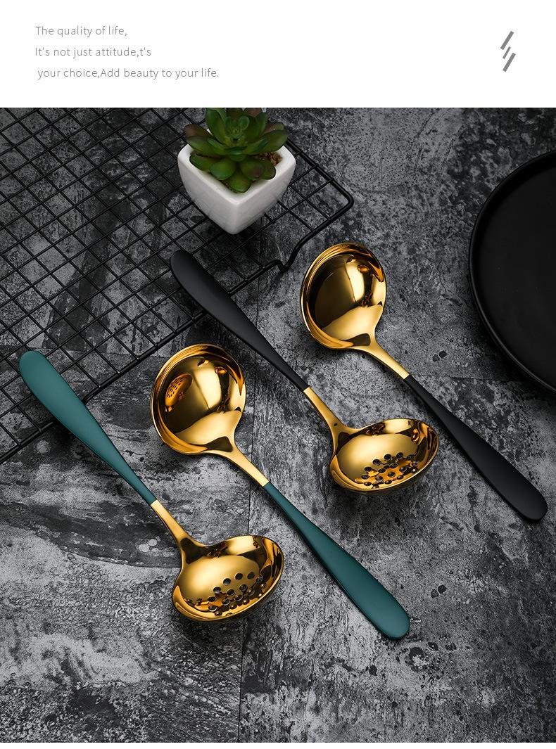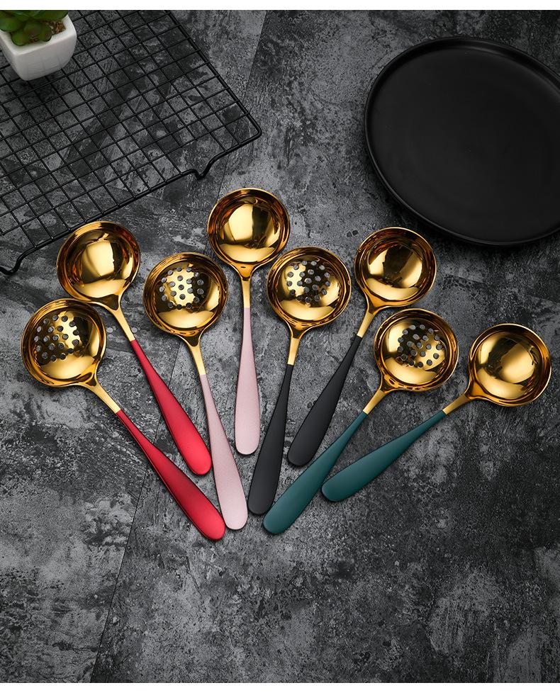 Natural spoon, Natural colander, Golden spoon, Golden colander, Red gold soup spoon, Red gold colander, Green ...