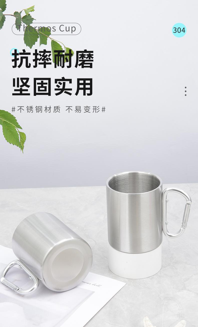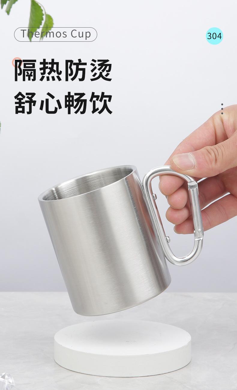 Outdoor Aço Inoxidável Handle Cup Camping Caminhadas Escalada Buckle Cup Double-Layer Handle Coffee Cup Copo de piquenique portátil