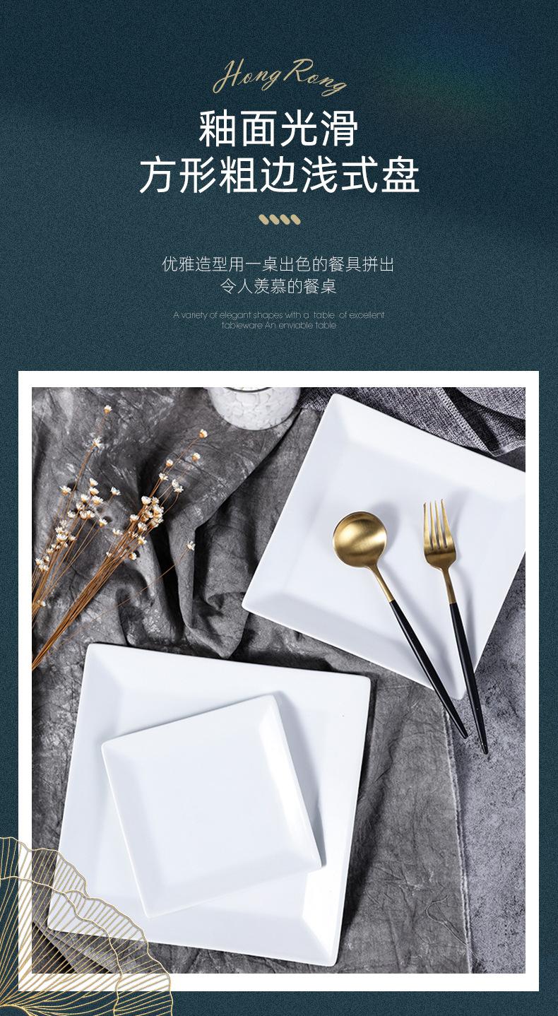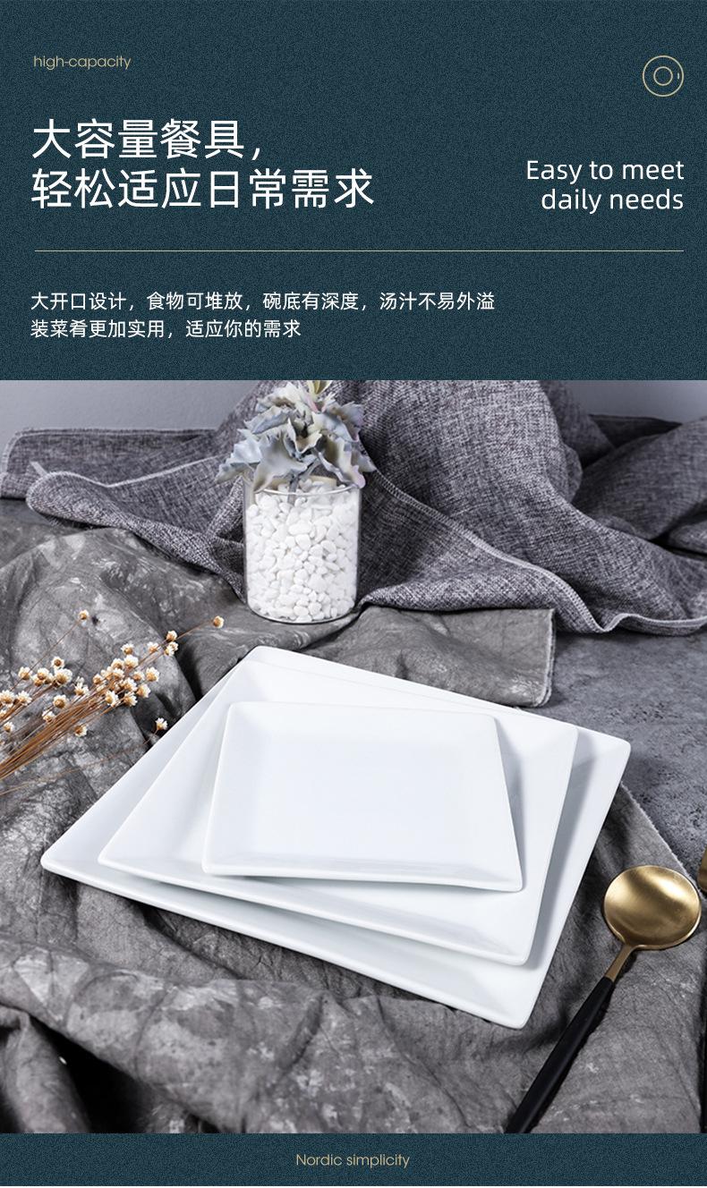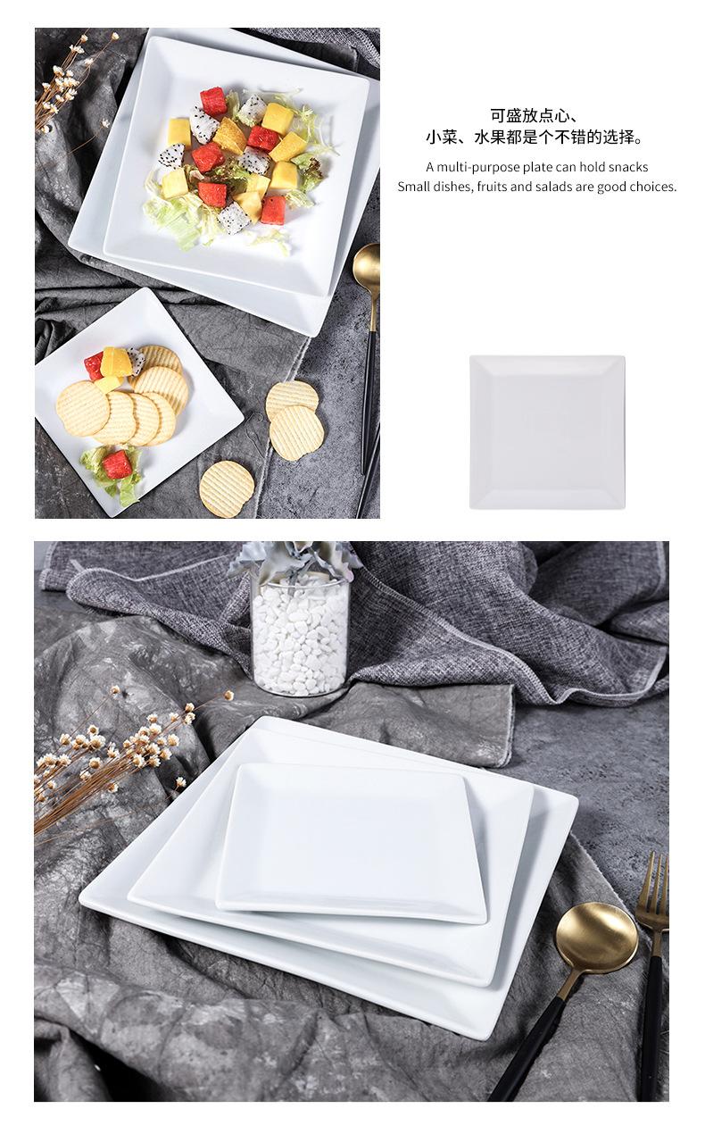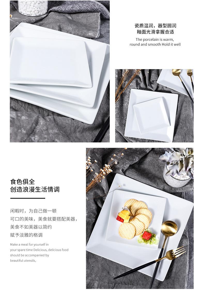 Compre Placa retangular de cerâmica Pure White Hotel Restaurante Jantar Prato Prato Doméstico Placa Quadrada Placa Plana Quadrada Placa rasa quadrada no atacado no Joom.pro