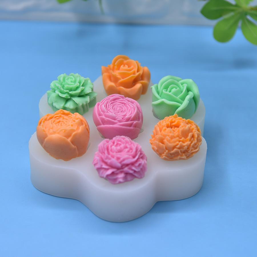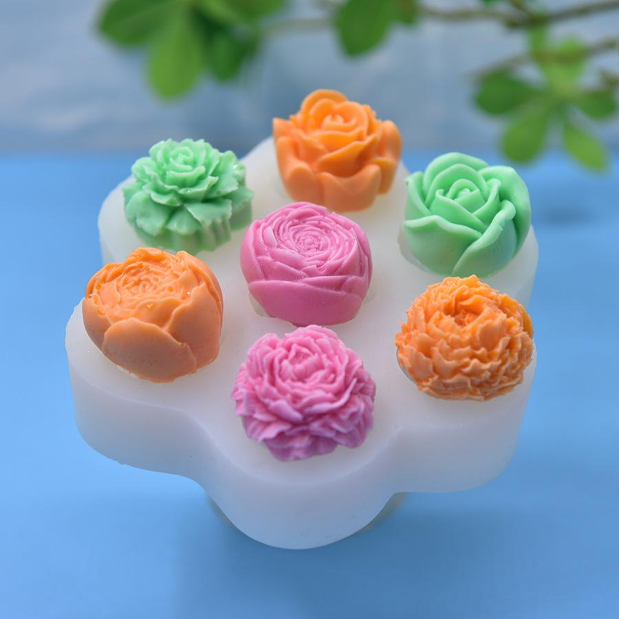 Compre Molde Rosa 7 Cavidades Formato Molde de Silicone Assar DIY Molde de Bolo Sabonete Fondant DIY Molde de Vela no atacado no Joom.pro