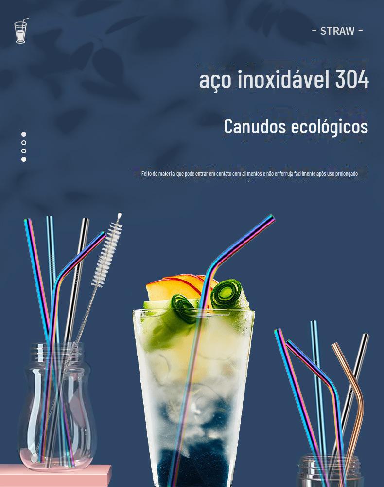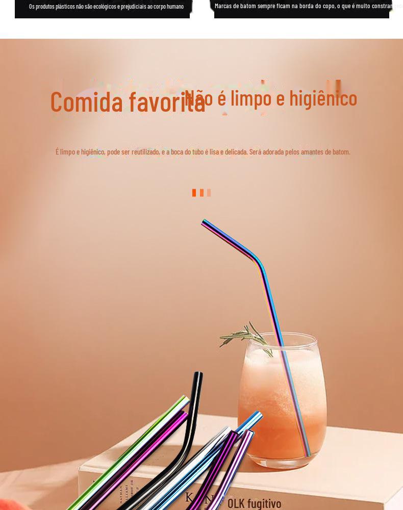 Canudo de Aço Inoxidável 304, Canudo para Beber Ecologicamente Correto, Canudo para Chá de Leite com Pérolas, Canudo de Ferro Metálico Espesso com Cotovelo, Não Descartável