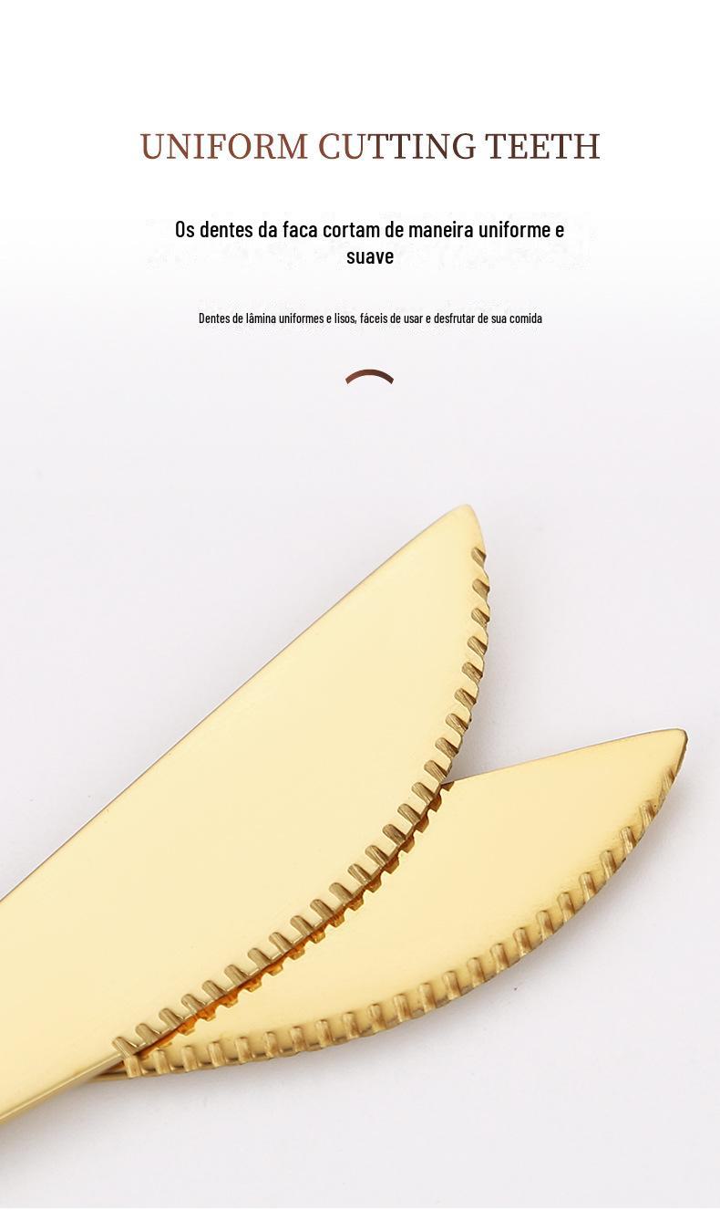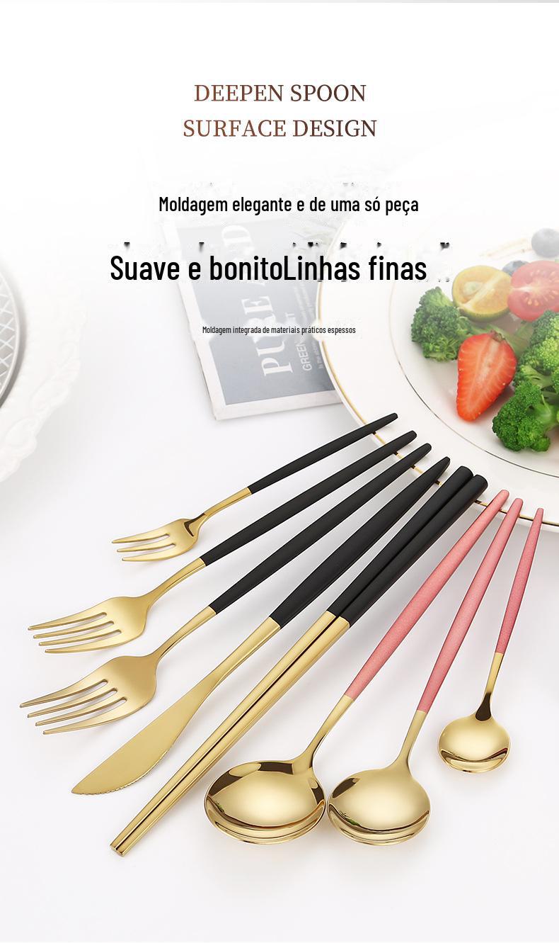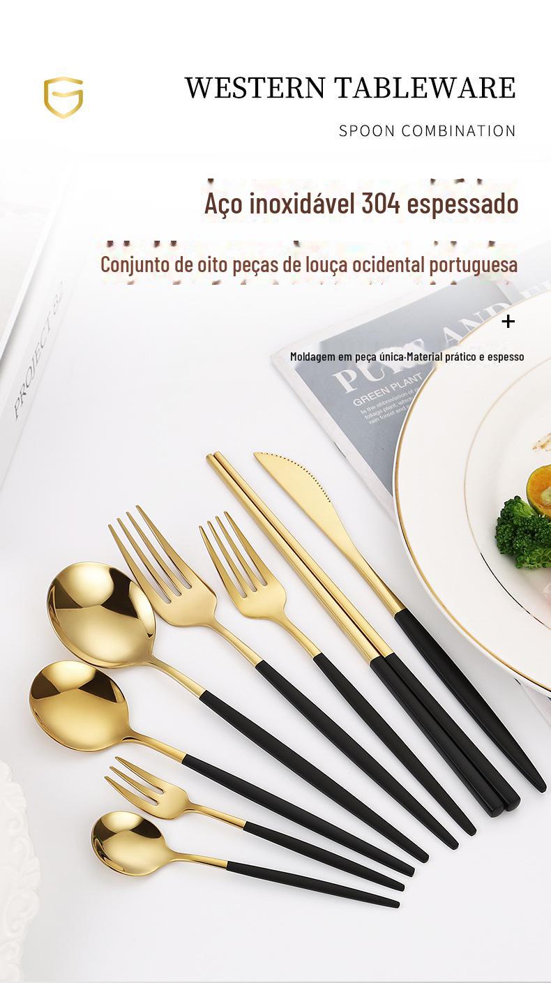 304 faca de aço inoxidável, garfo e colher Louça portuguesa Faca de bife em ouro preto e terno de garfo de alta aparência colher e garfo de sobremesa