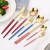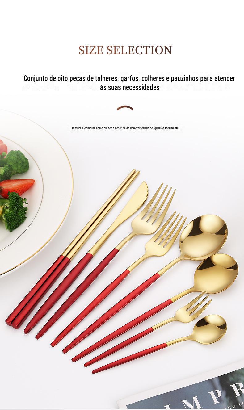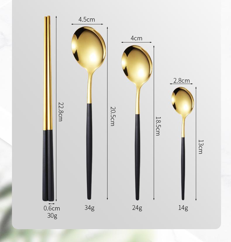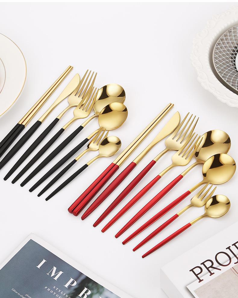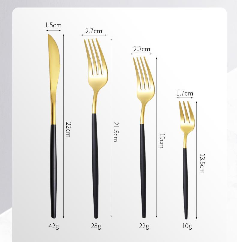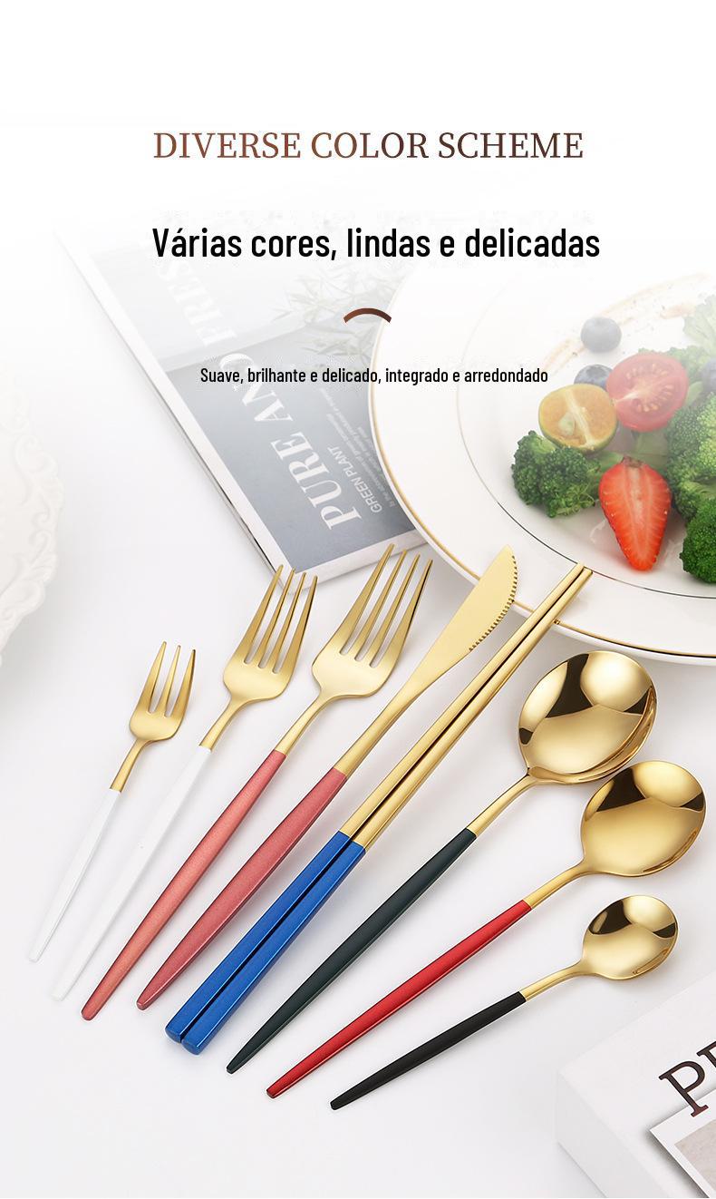 304 faca de aço inoxidável, garfo e colher Louça portuguesa Faca de bife em ouro preto e terno de garfo de alta aparência colher e garfo de sobremesa