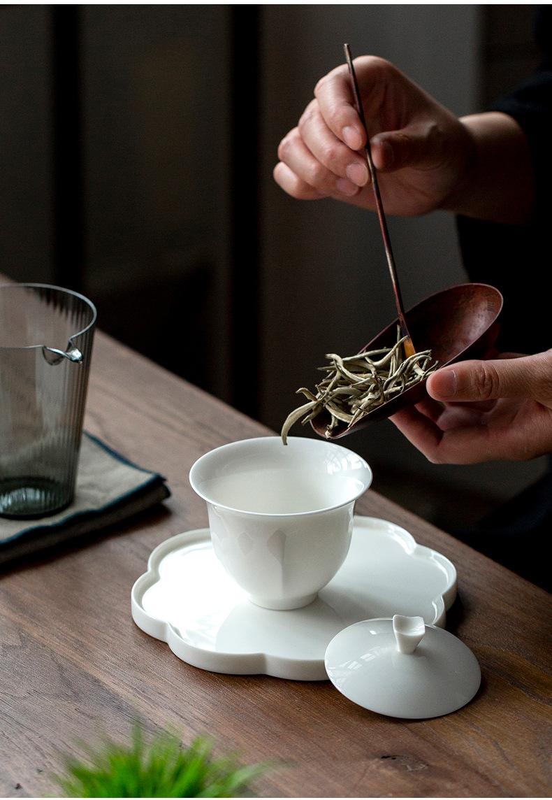 Mi Bai San Cai Gai Bowl e Pot Bearing Porcelana Branca Tea Bowl Tea Maker Kung Fu Tea Set Celadon Business Acompanhando Personalização da Cerimônia