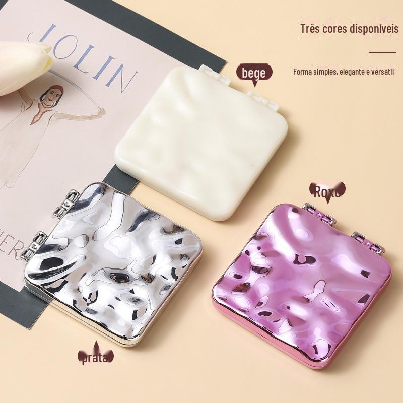 Espelho pequeno de dupla face para senhoras, espelho portátil, espelho dobrável de plástico, mini espelho de mão, espelho de maquiagem galvanizado para mesa
