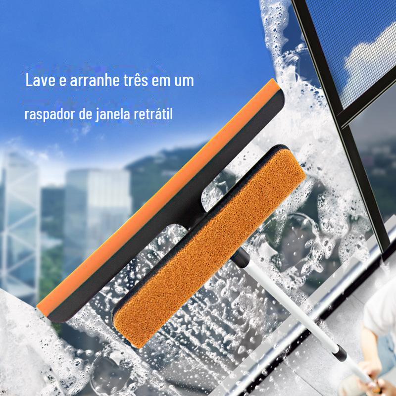 Douyin Emma Orange multifuncional três em um escova de janela raspador de janela escova de limpeza telescópica limpador de vidro limpador