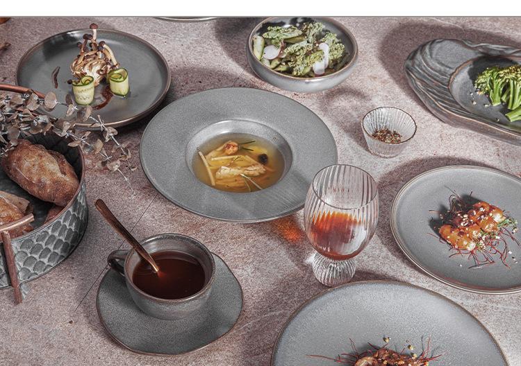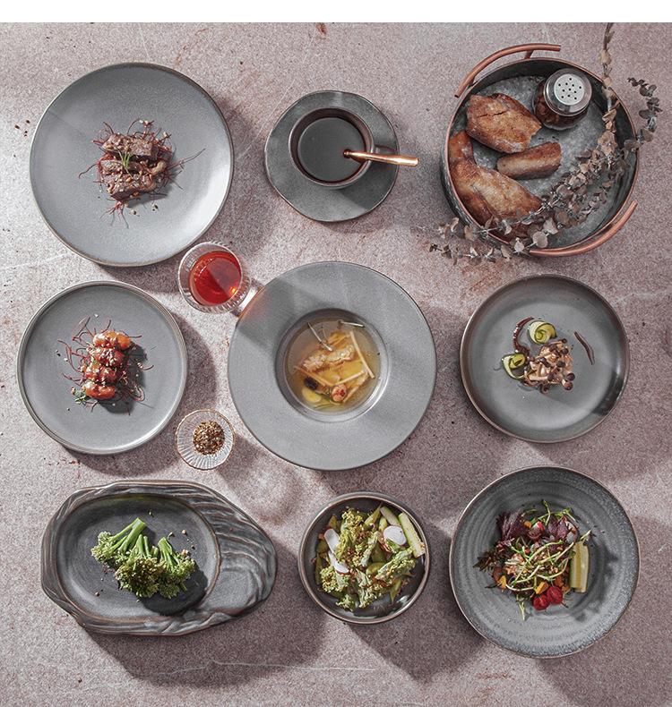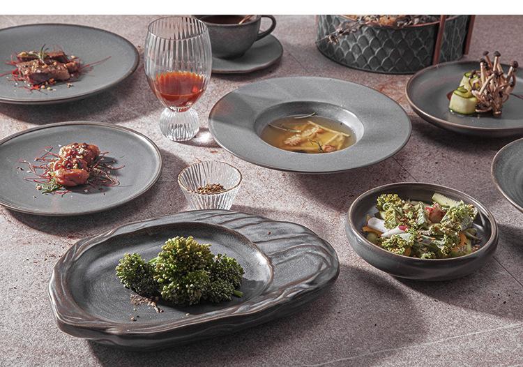Placa de cerâmica de disco de estilo japonês placa de bife prato de café da manhã placa de sushi placa plana com esmalte cor de prato prato raso louça de restaurante ocidental