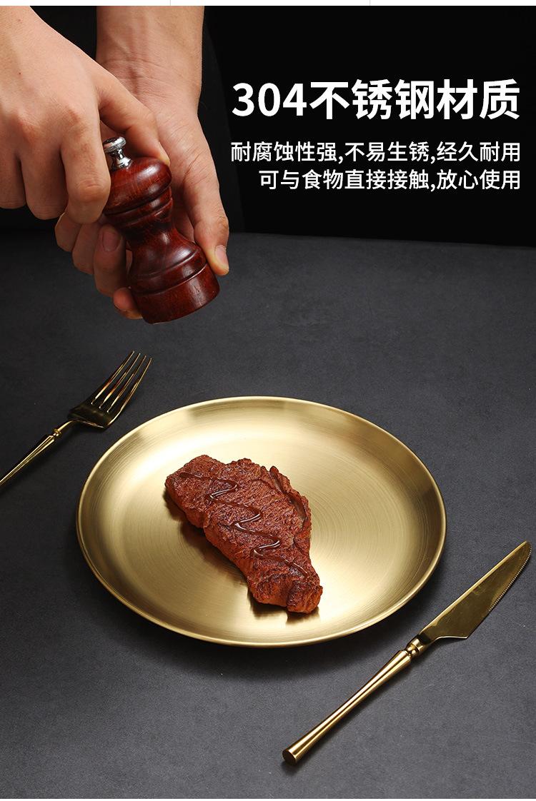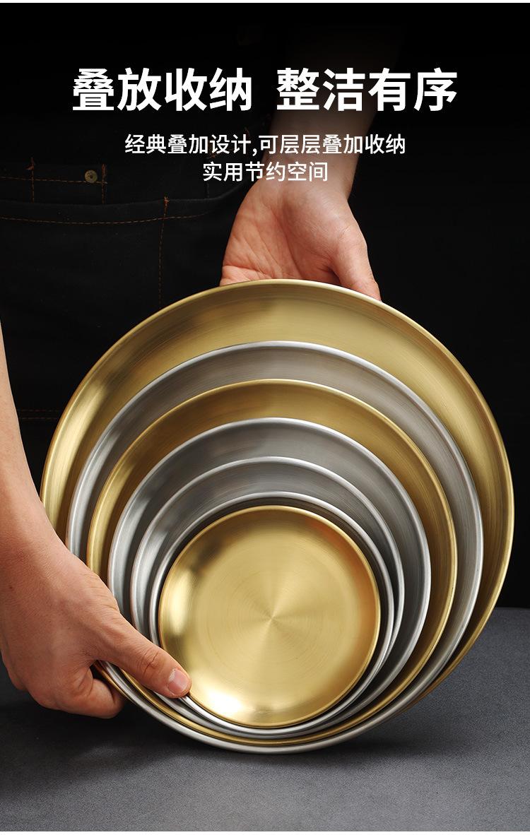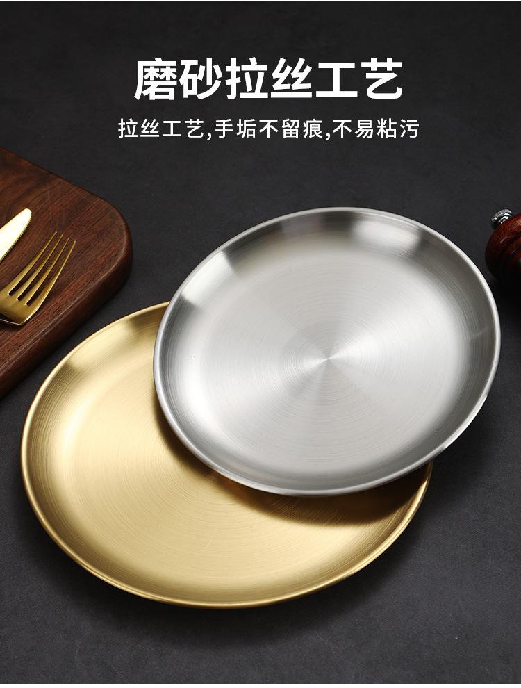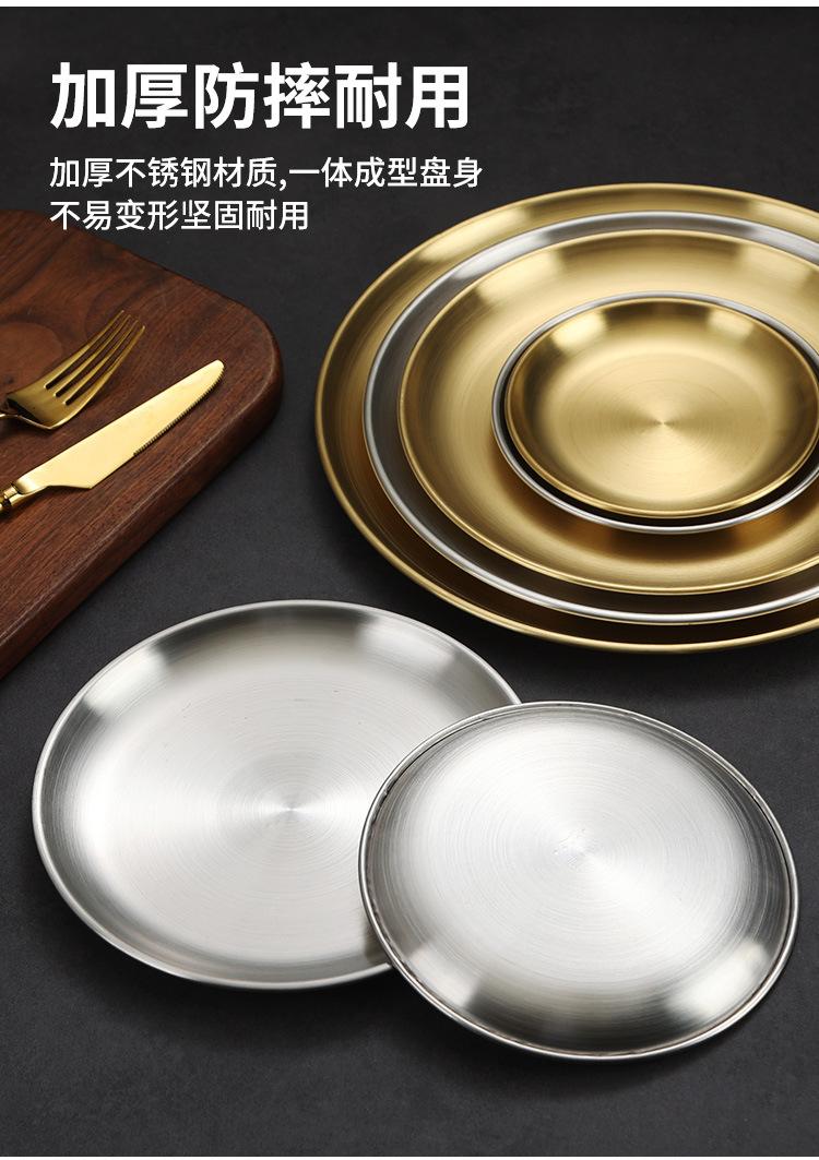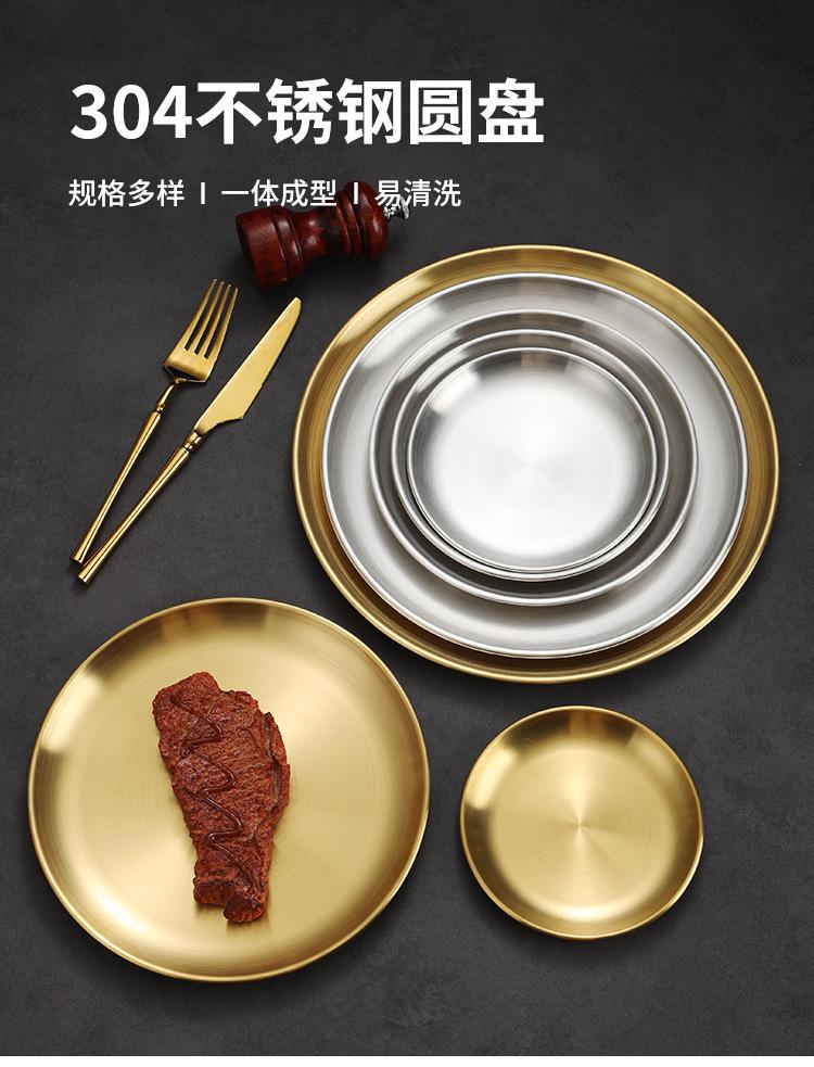 Compre Estilo coreano 304 disco de aço inoxidável Golden Barbecue Shop Placa Especial Café Bandeja engrossada Prato de placa de osso raso no atacado no Joom.pro