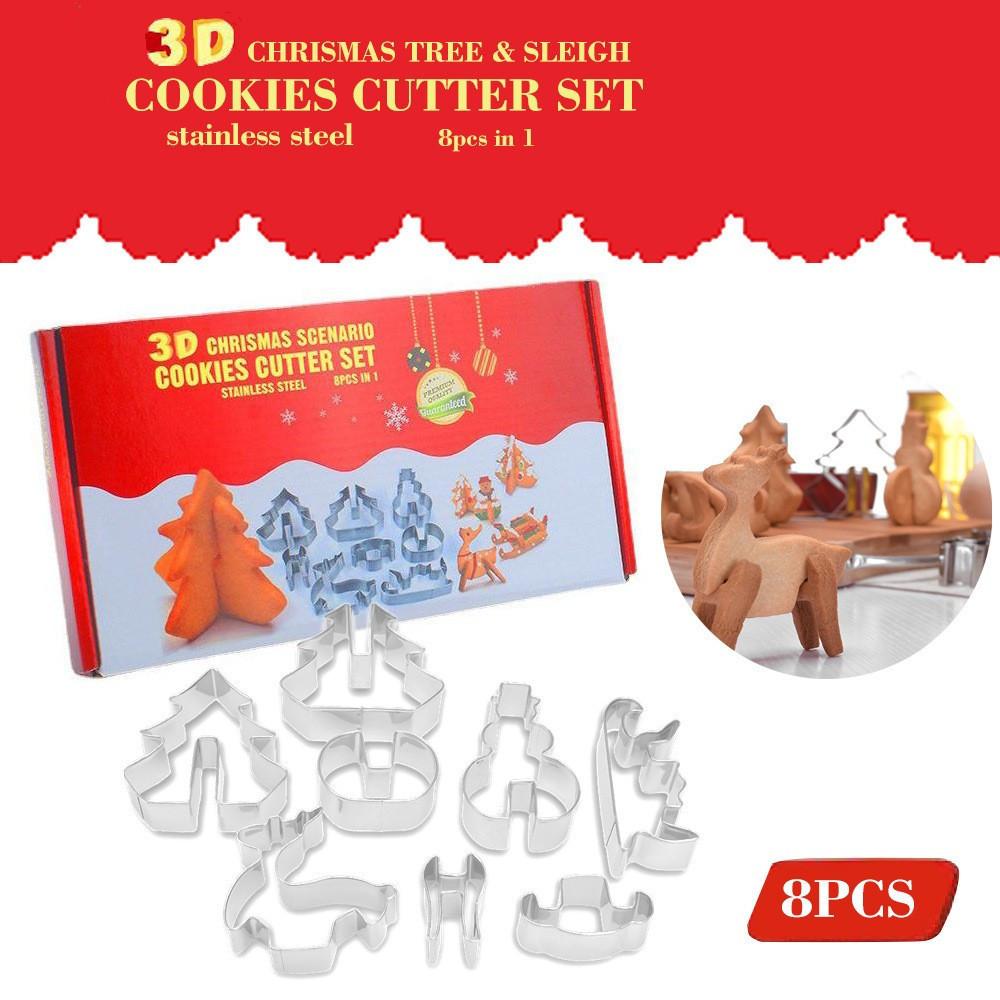 Ferramentas de Confeitaria Prontas Molde de Biscoito de Aço Inoxidável Conjunto de 8 Peças Carimbo de Biscoito Estéreo 3D de Natal Molde de Bolo