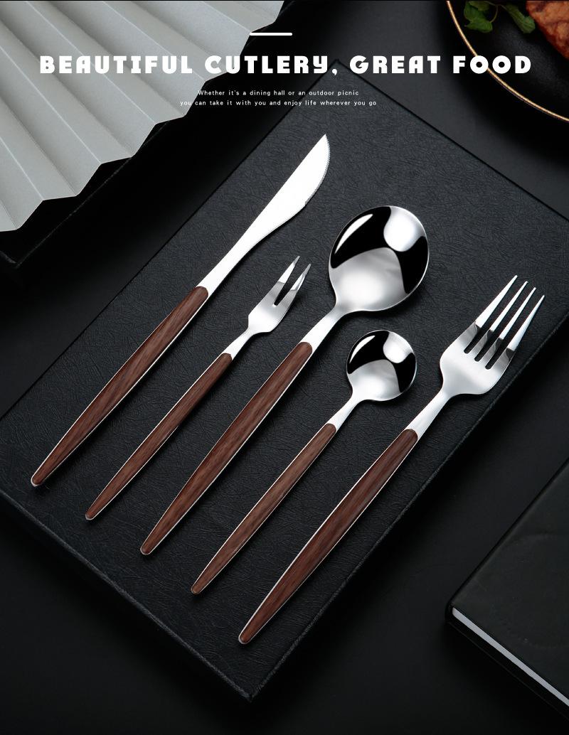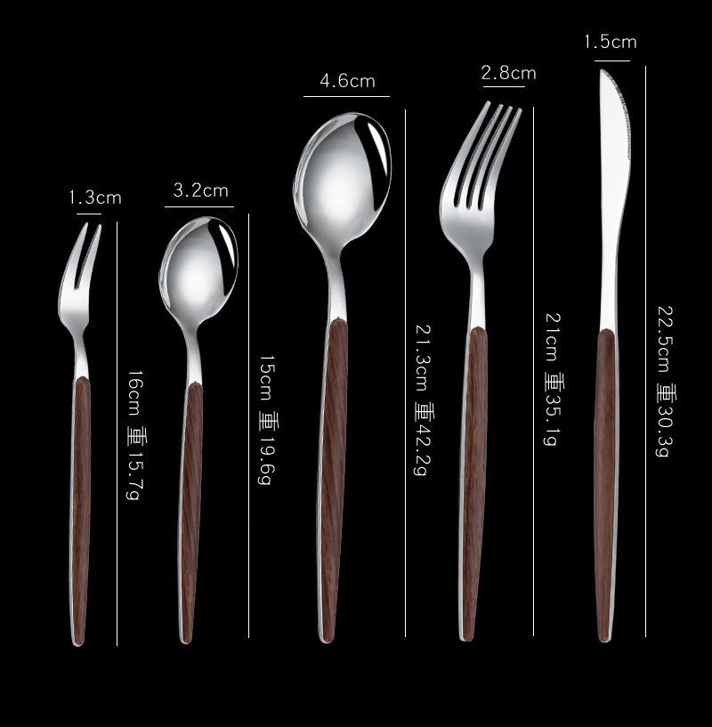 Walnut-Main knife, Walnut-main meal spoon, Walnut-Master Fork, Walnut-Tea Spoon, Walnut-Tea Fork, Log grain co...
