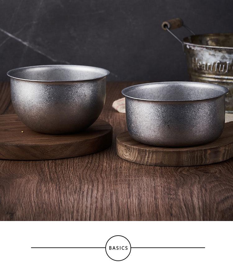 Vintage Estilo Industrial 304 Aço Inoxidável Tigela Única Camada Doméstica Arroz Round Bowl Velho Outdoor Camping piquenique Tigela Dupla Camada