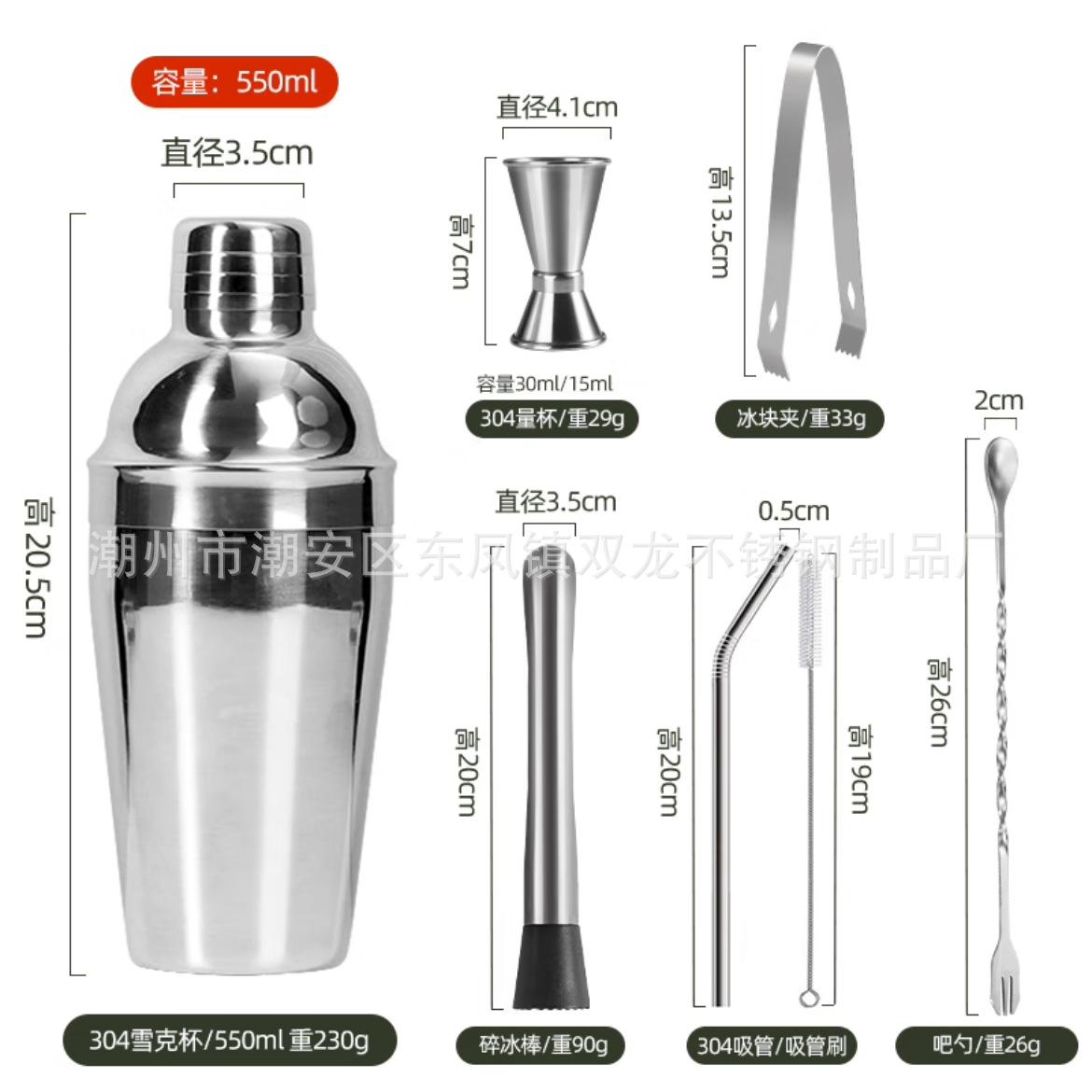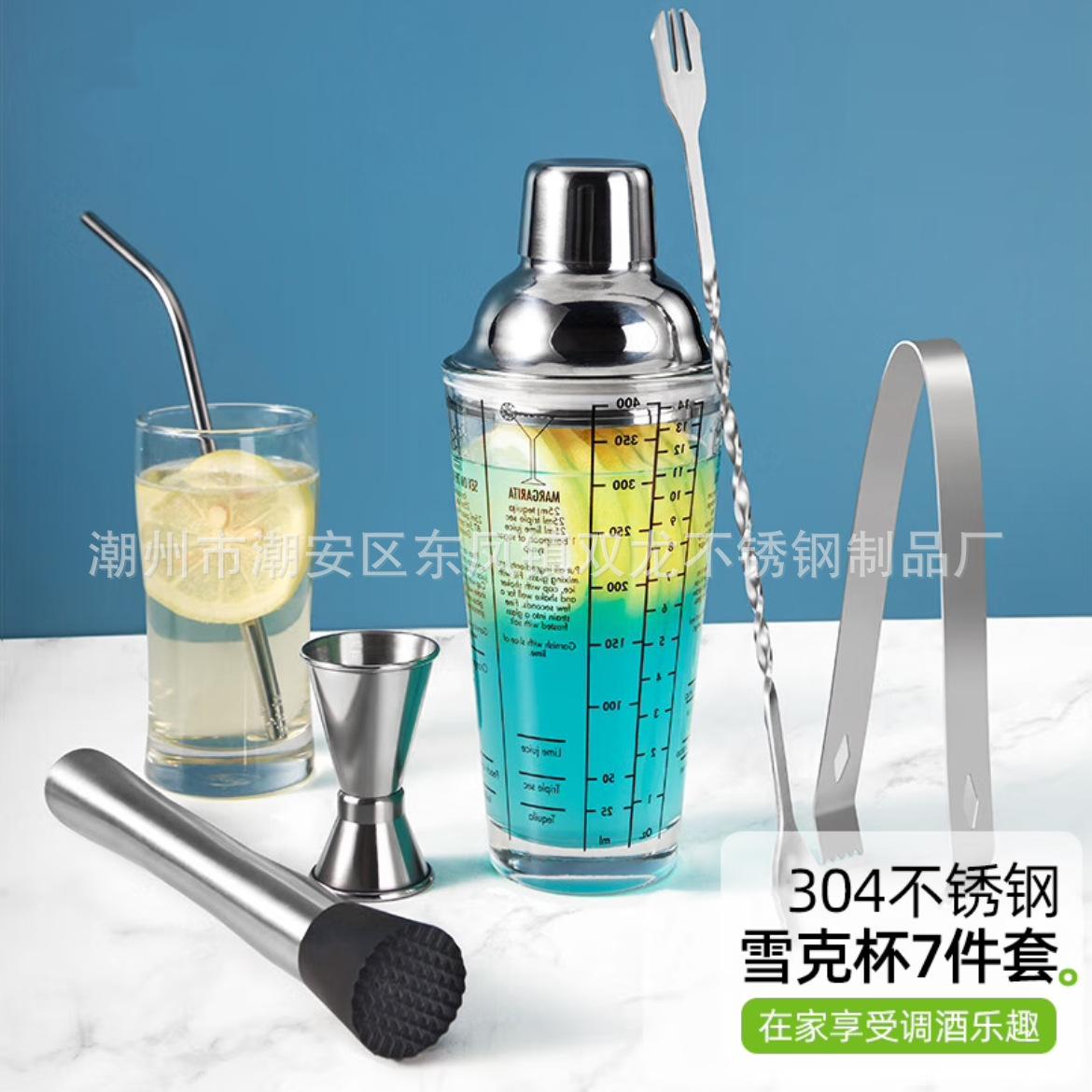 304 stainless steel wine shaker 7-piece set, Glass cocktail set 7-piece set, 201 stainless steel wine shaker 8...