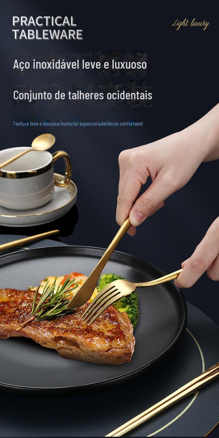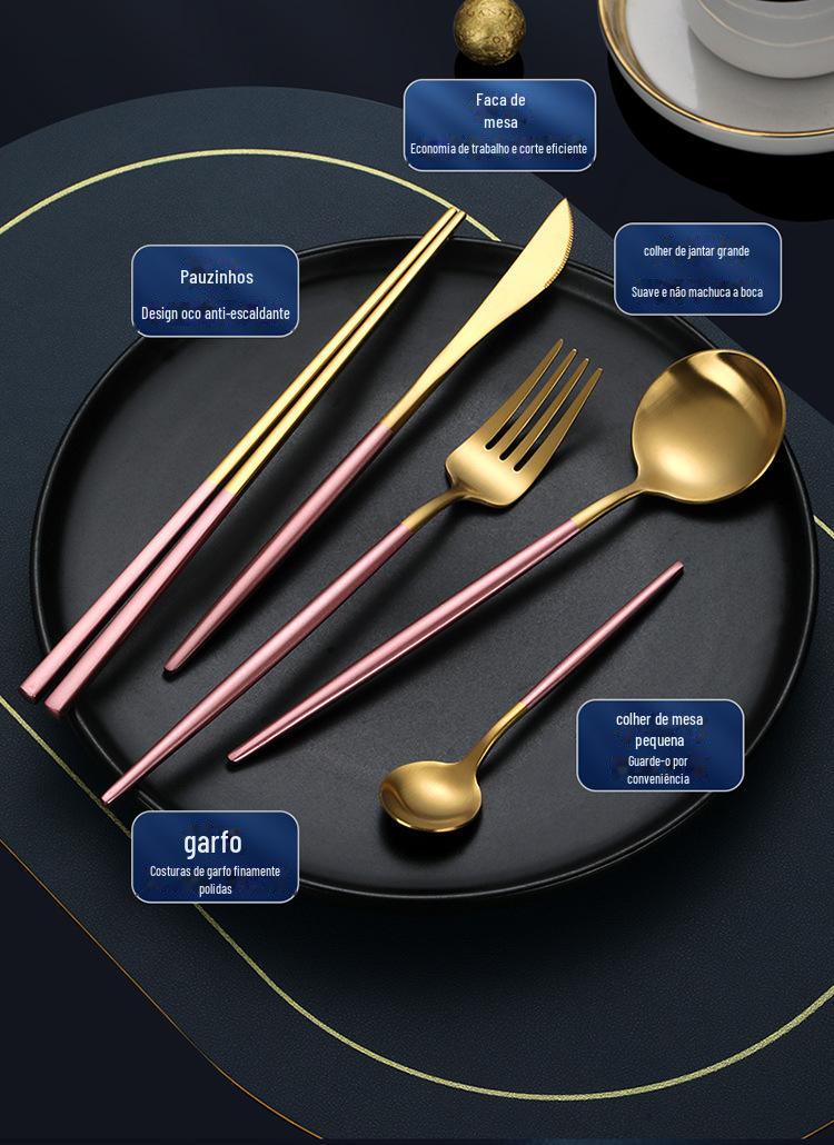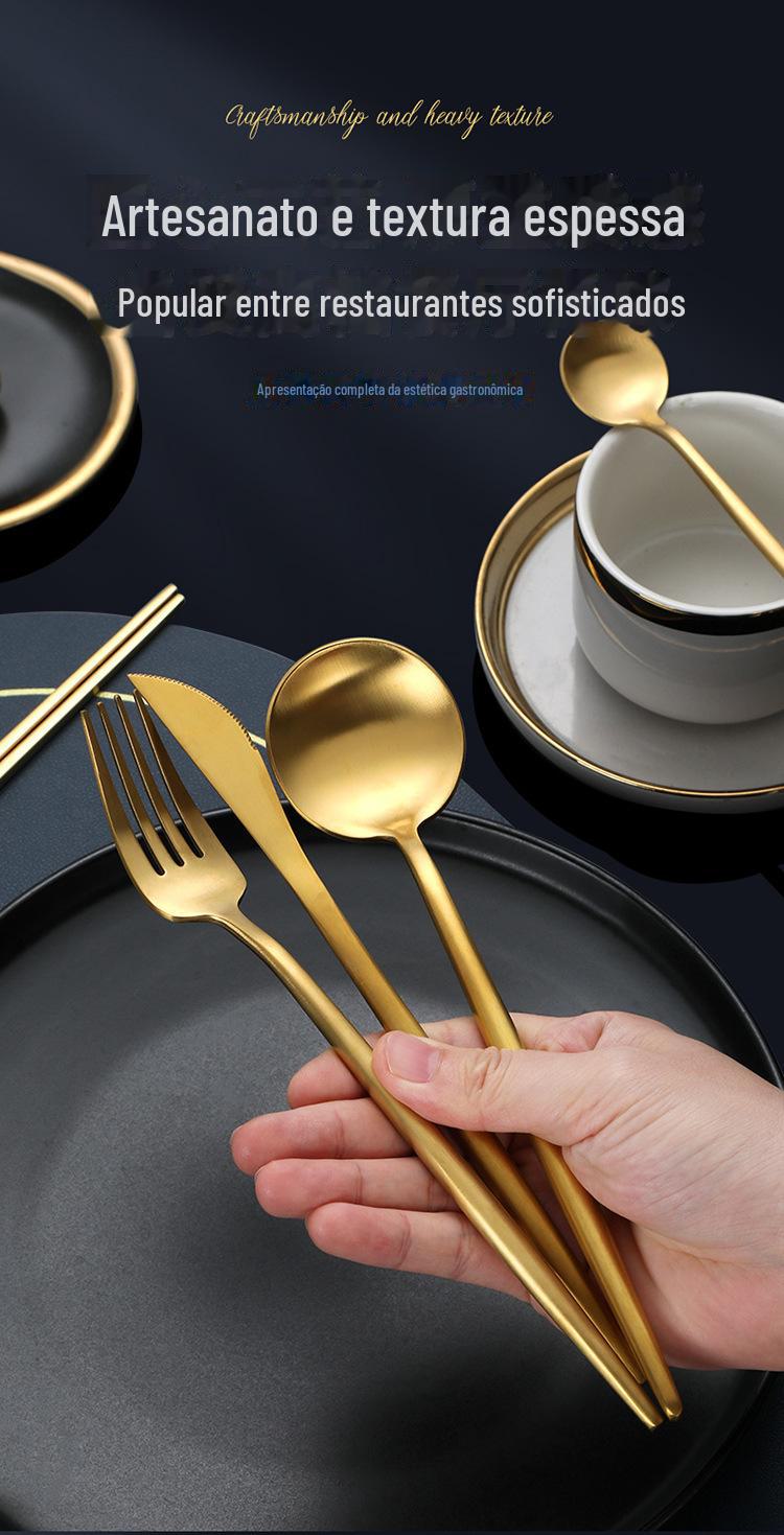 Conjunto transfronteiriço de facas, garfos e pauzinhos de aço inoxidável 304 Faca de bife e garfo nórdicos de alto valor estilo ocidental Louça portuguesa