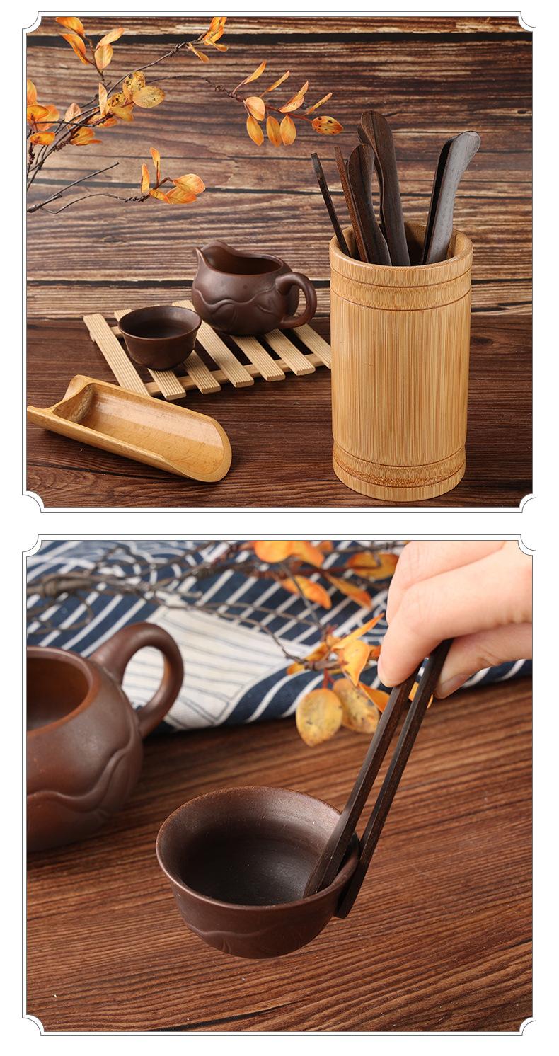 Venda por atacado conjunto completo cerimônia de chá de ébano cinco cavalheiros chá clipe faca de chá colher de chá copo clipe bule caneta chá conjunto acessórios terno