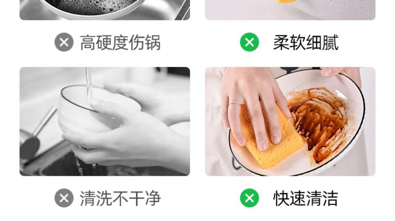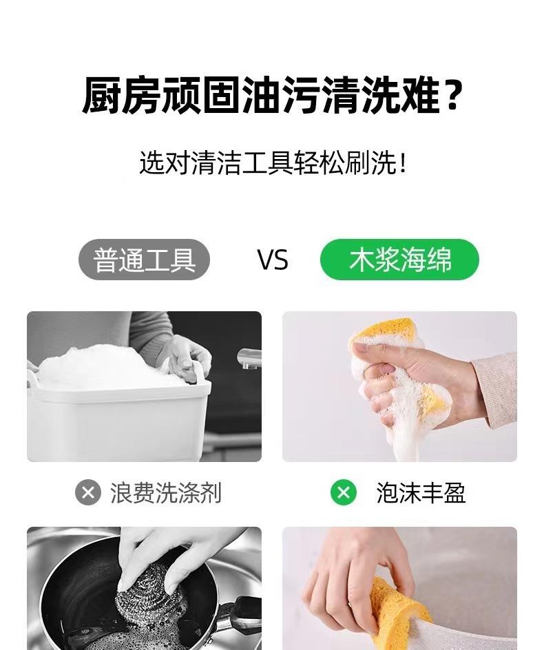Esponja de lavar louça de polpa de madeira natural espessada, óleo antiaderente, limpeza mágica de cozinha, escova nano durável, esfregão de limpeza de panelas