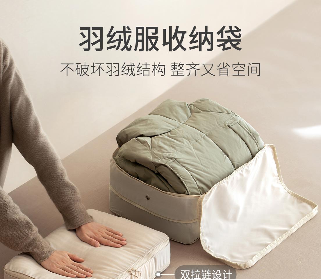 Bolsa de armazenamento especial para jaquetas de plumas, bolsa de compressão para roupas de viagem, embalagem para bagagem, bolsa de armazenamento para acabamento doméstico