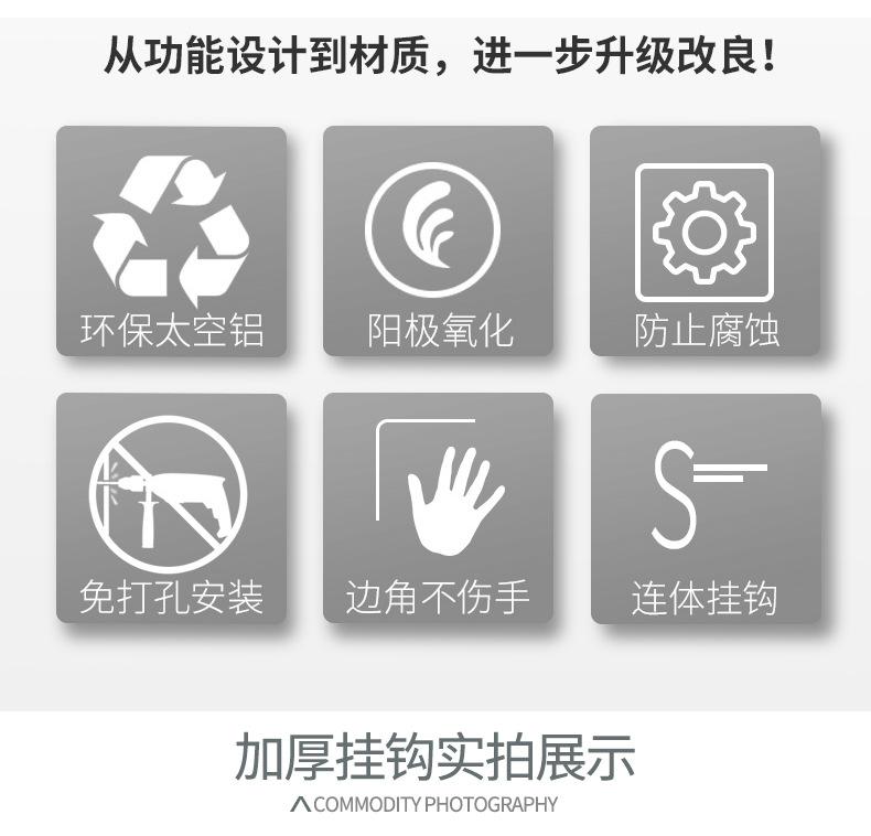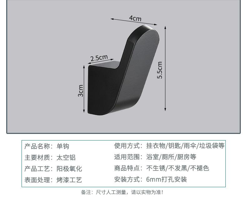 Gancho de roupas pretas engrossadas Espaço de alumínio Gancho de roupas branco Gancho de parede Gancho único