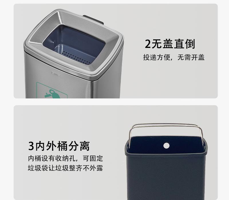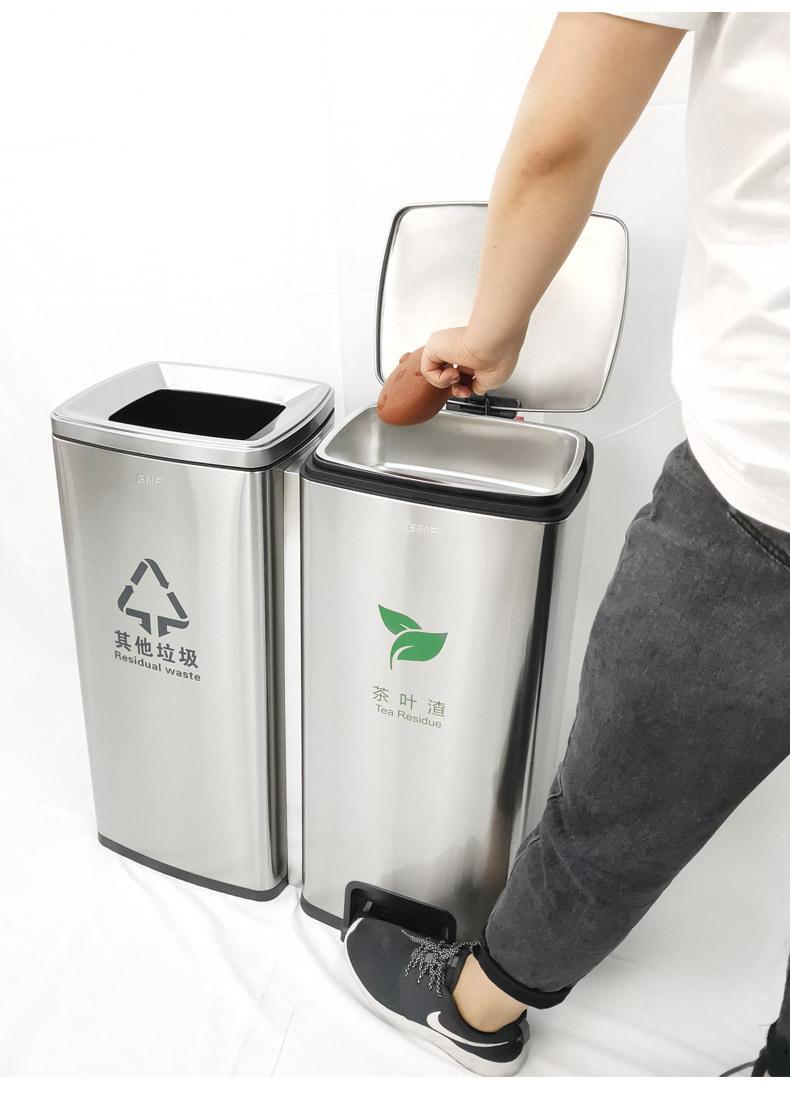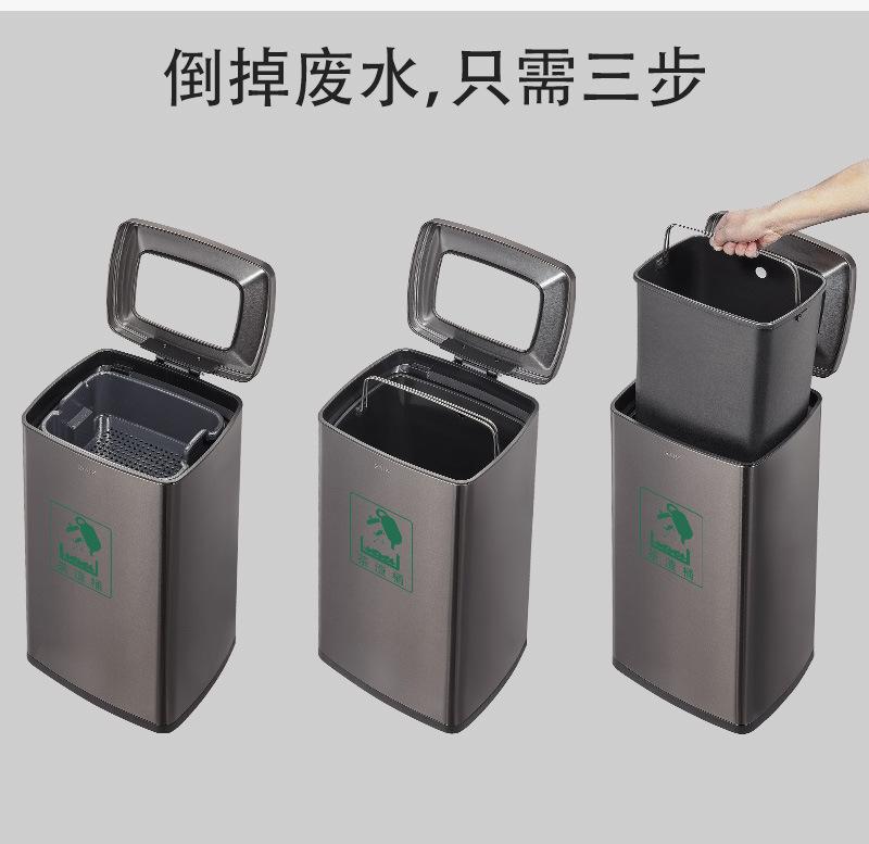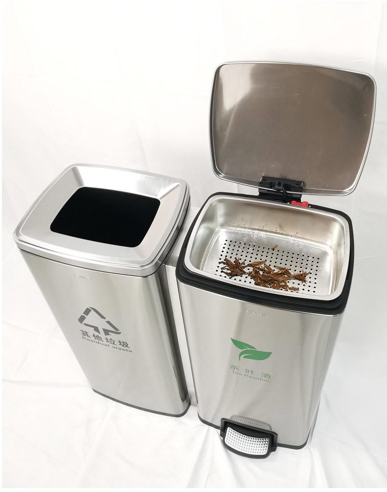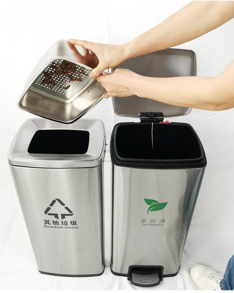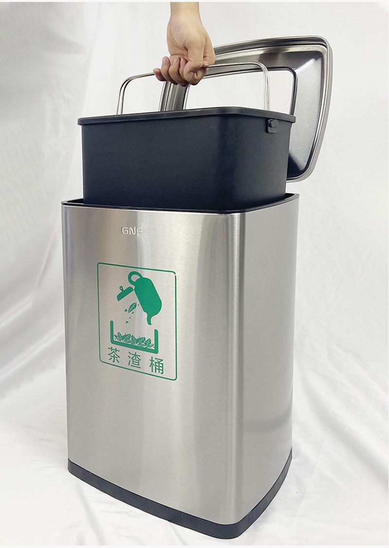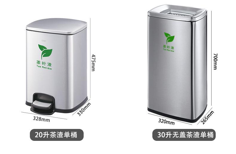 tamanho:Balde de resíduos de chá de classificação dupla: comprimento 650 * largura 260 * altura 690 mm (30 litros de cada lado, 60 litros no total)