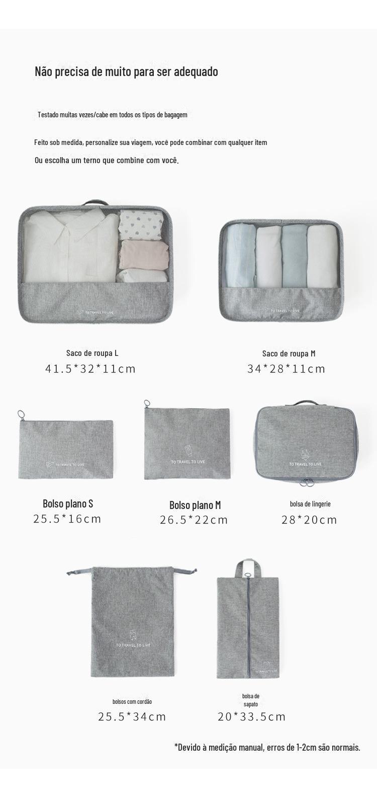 Bolsa de Cosméticos Portátil de Viagem de Grande Capacidade Sete Peças Impermeável Organizador de Roupas Íntimas Bolsa Classificação de Bagagem Lote de Bolsa de Cosméticos