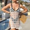 Vestido de praia transfronteiriço novo 2024, vestido ondulado, decote profundo, cintura elástica, saída de praia mais vendida na Amazon
