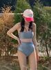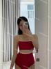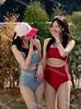 5 Cores] Novo Sexy Ins Estilo Strapless Retro Contraste Cor Cintura Alta Barriga Cobrindo Slim-fit Maiô Biquíni Feminino