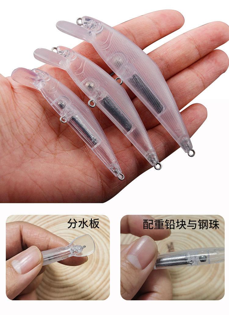 Nova isca Luya flutuante Mino embrião 5g8g13g longo tiro plástico isca dura branco isca falsa equipamento de pesca atacado