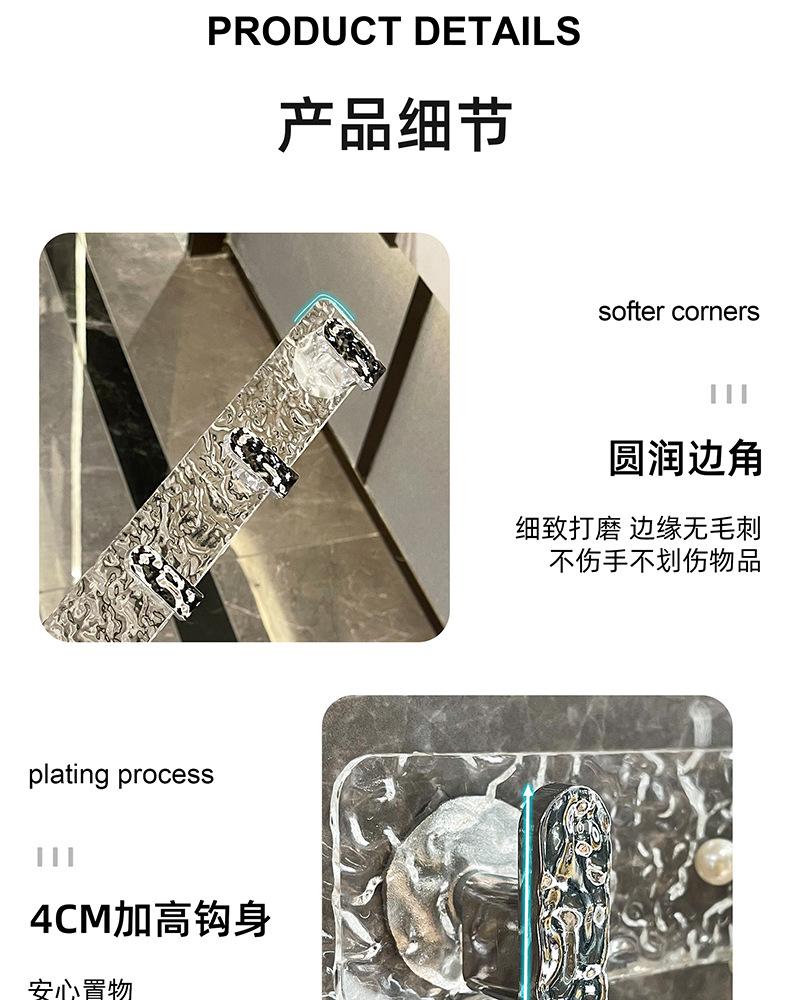 Gancho de luxo leve adesivo sem perfuração, suporte de carga forte, parede da porta do banheiro, gancho pegajoso pendurado Cabide de roupas sem costura de parede