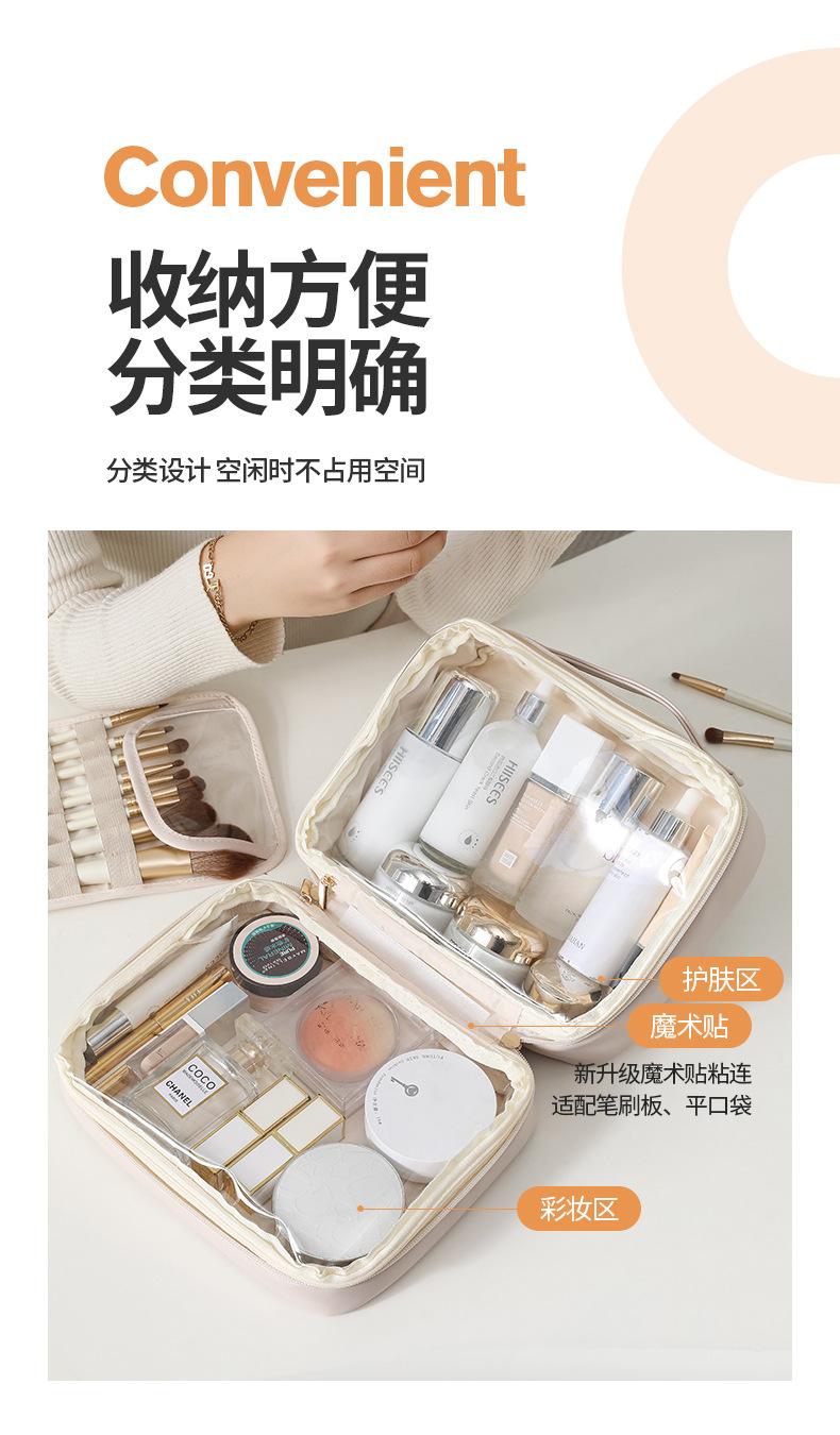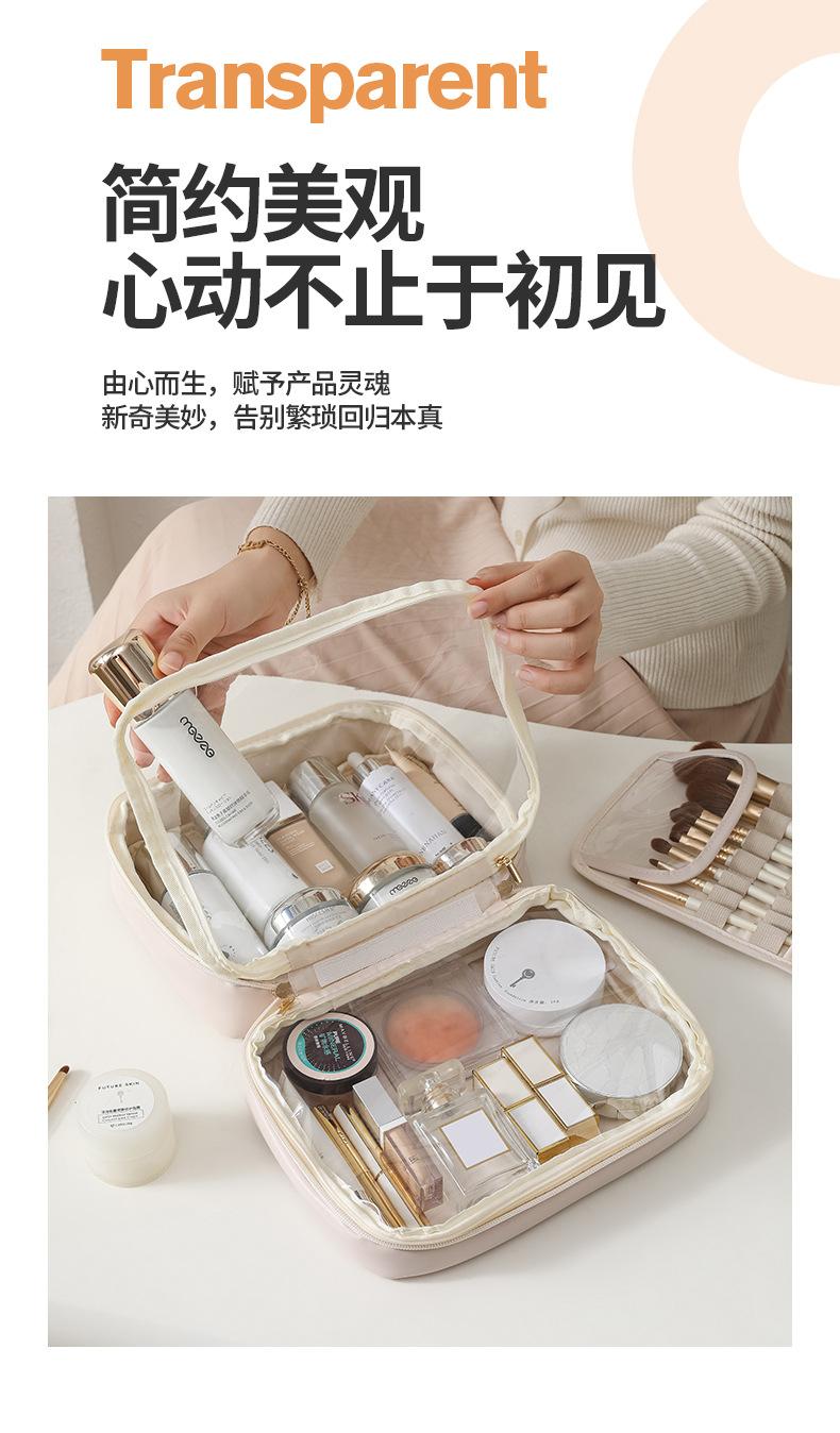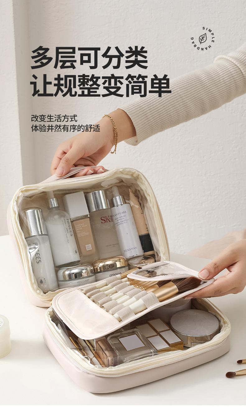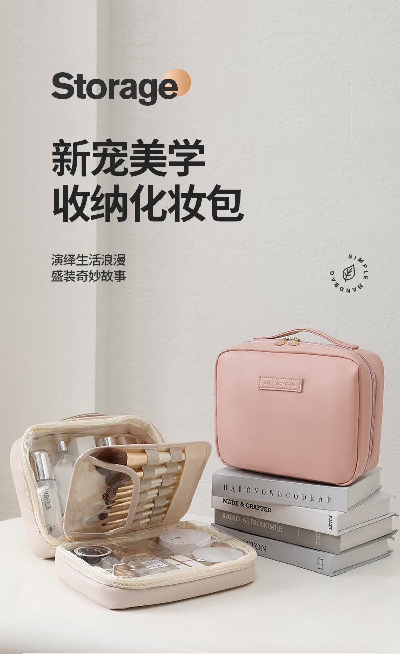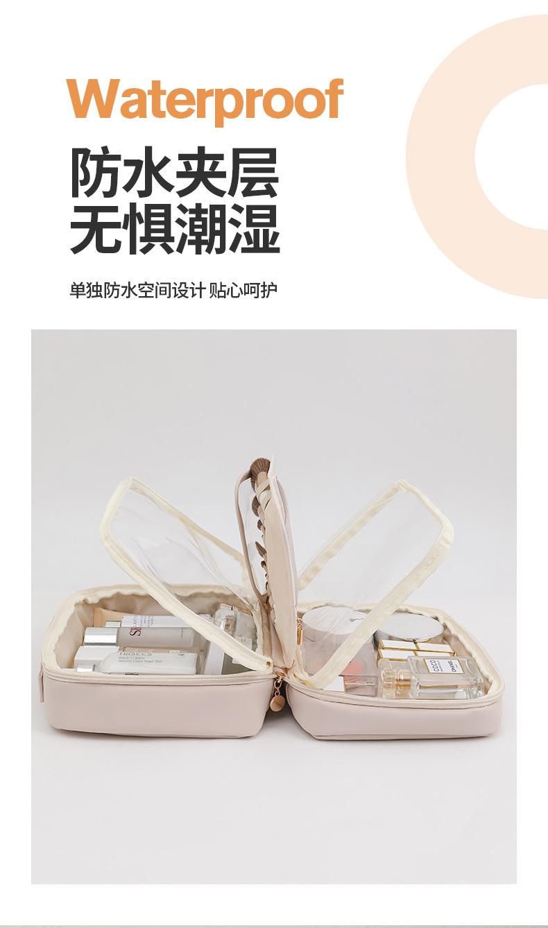Novo saco cosmético de couro PU transparente portátil de viagem saco de armazenamento cosmético saco de lavagem simples atacado impresso LOGO