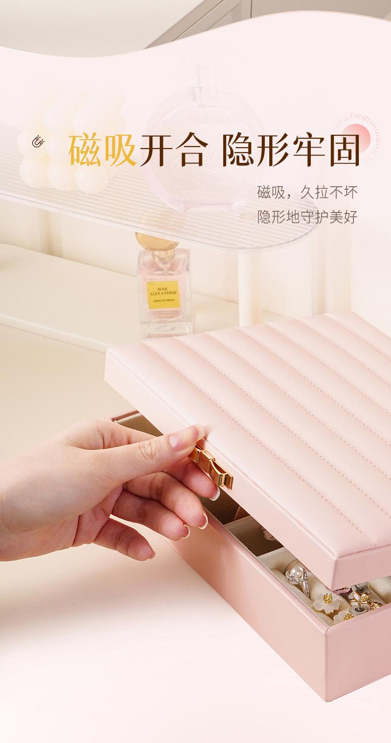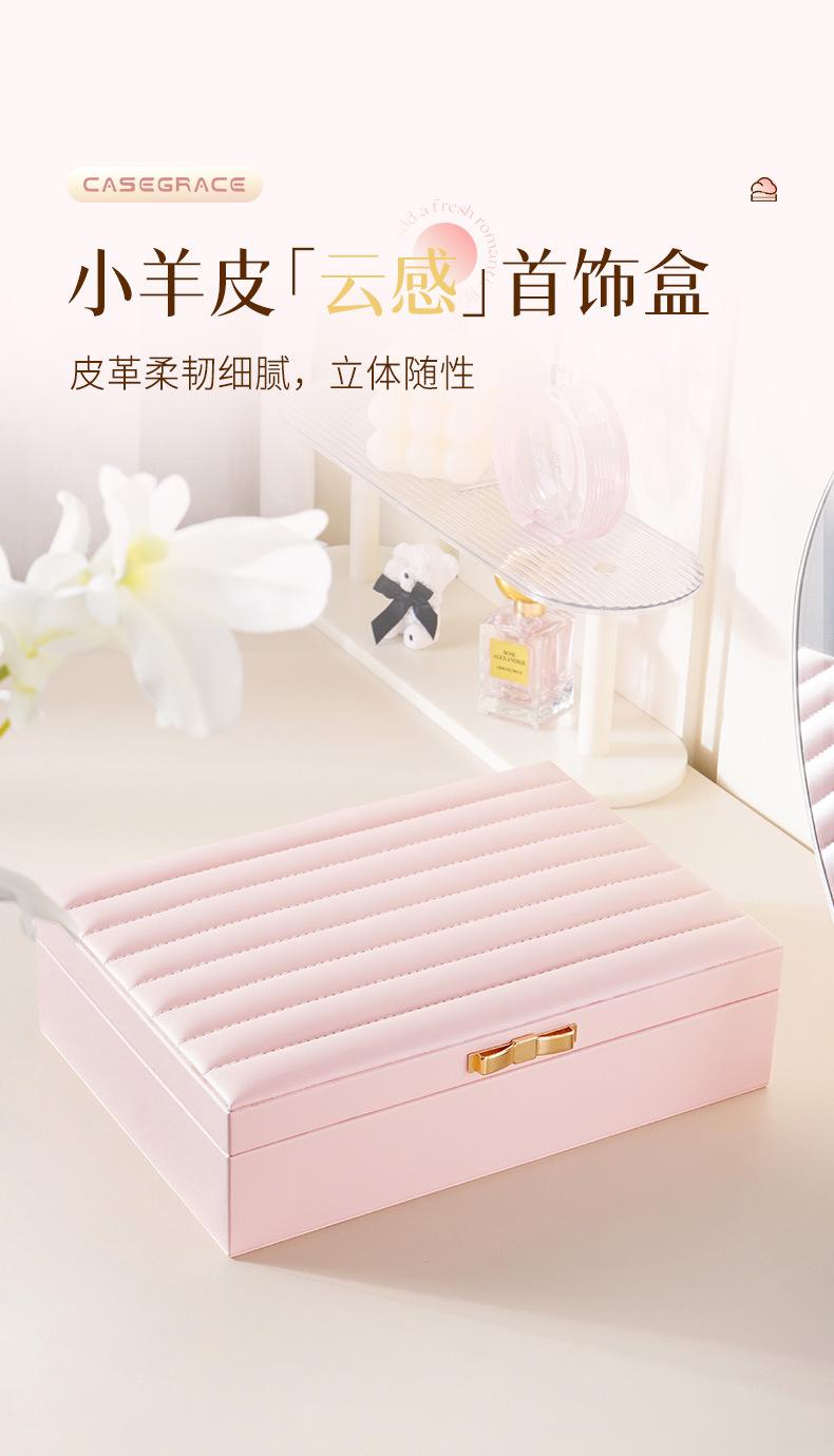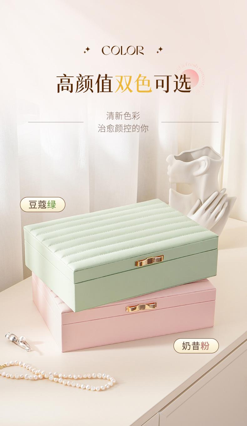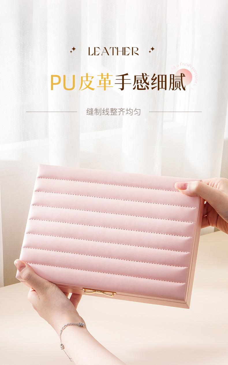 Única camada de grande capacidade PU caixa de joias listrado de couro caixa de joias anel brincos brincos colar caixa de armazenamento
