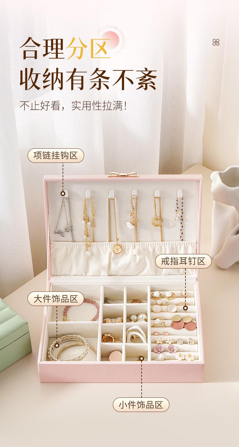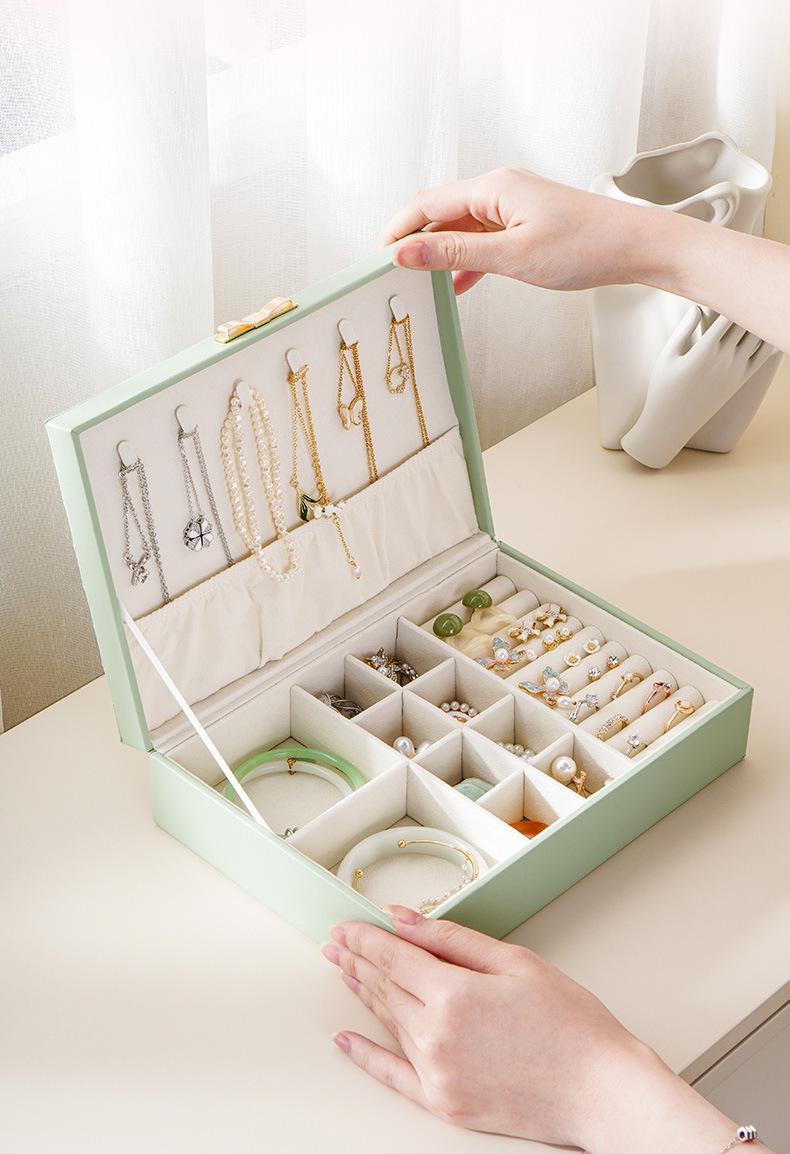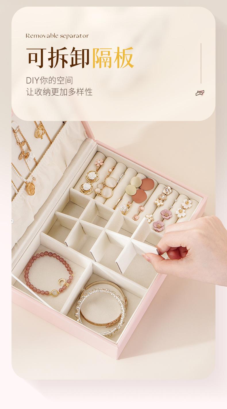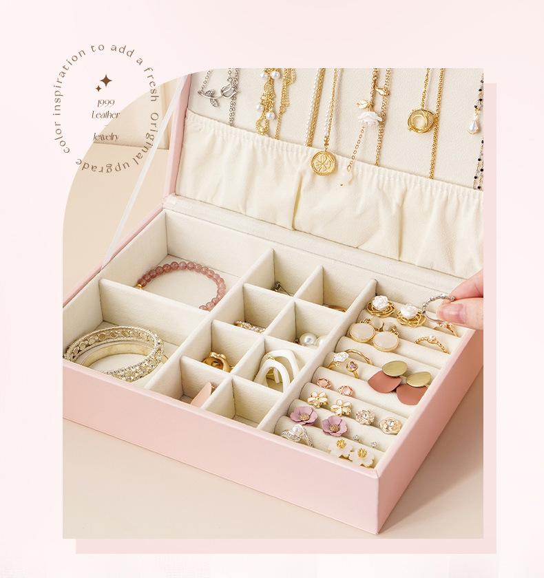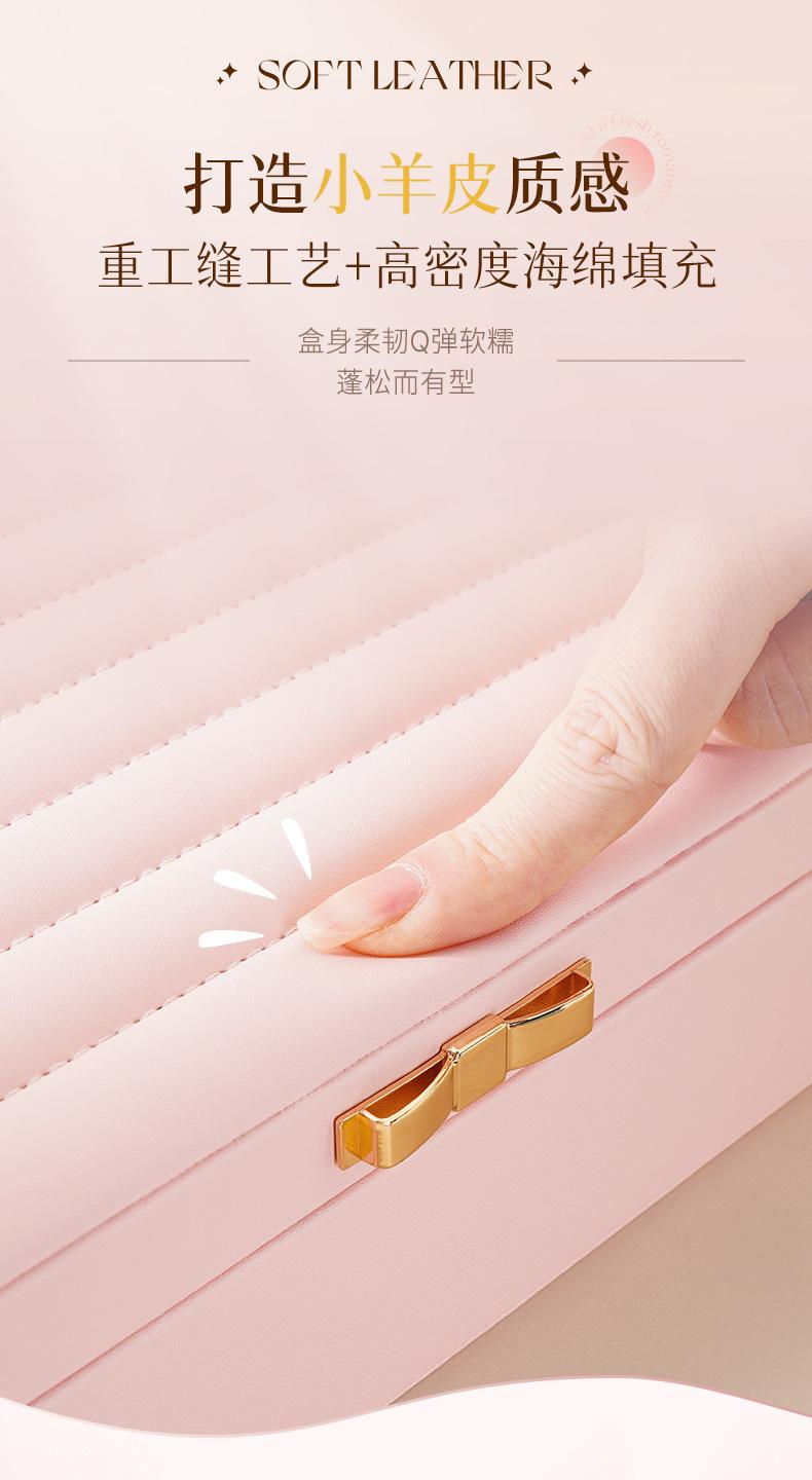 Única camada de grande capacidade PU caixa de joias listrado de couro caixa de joias anel brincos brincos colar caixa de armazenamento