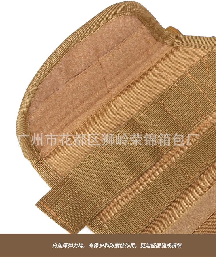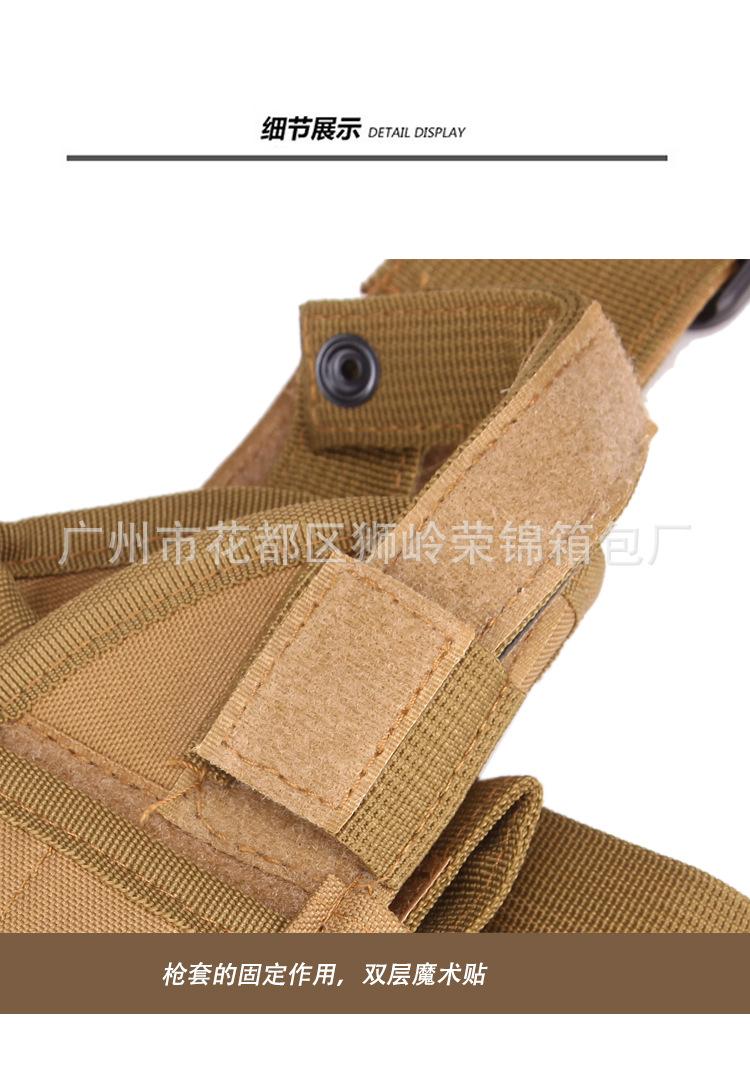 Descrição do produto: A extremidade superior pode ser pendurada no cinto, e há duas tiras ajustáveis na parte de trás das leggings. O Tornado é um tipo universal ajustável (com fivela mágica dentro, tamanho ajustável. É adequado para equipamentos de vários tamanhos, formas e formatos, por isso é chamado de "conjunto universal". Ele pode conter vários equipamentos táticos, como lanternas ou indicadores de laser, o que é conveniente para extração e uso precisos e rápidos do equipamento.