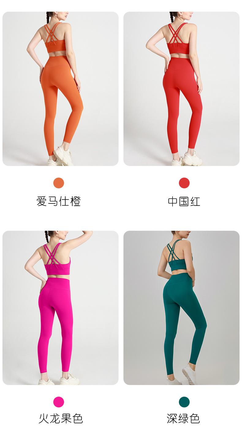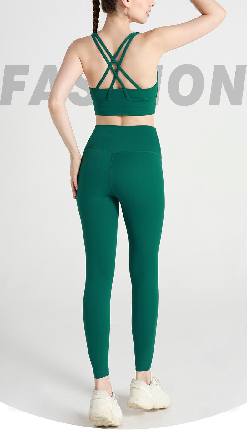 Conjunto de ioga de verão com costas cruzadas, calças de ioga de cintura alta europeias e americanas, roupas esportivas de ioga de duas peças