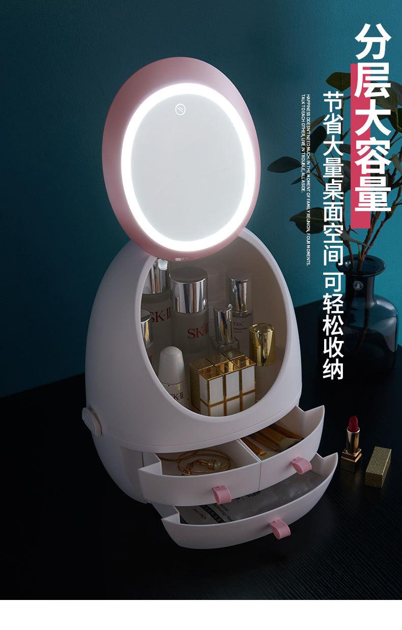 Compre Caixa de armazenamento de cosméticos de celebridades da Internet, espelho de lâmpada LED, gaveta, tipo, portátil, desktop, armazenamento de produtos para cuidados com a pele, caixa de cosméticos à prova de poeira no atacado no Joom.pro