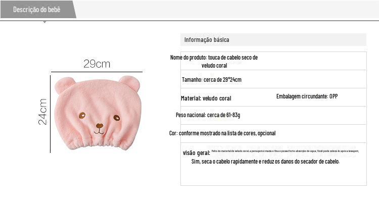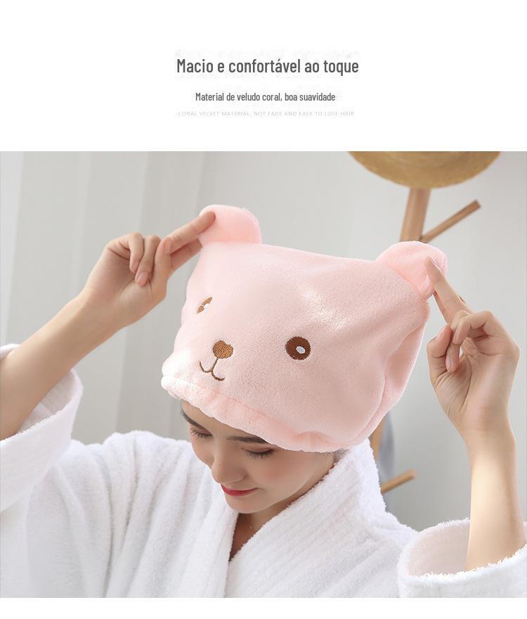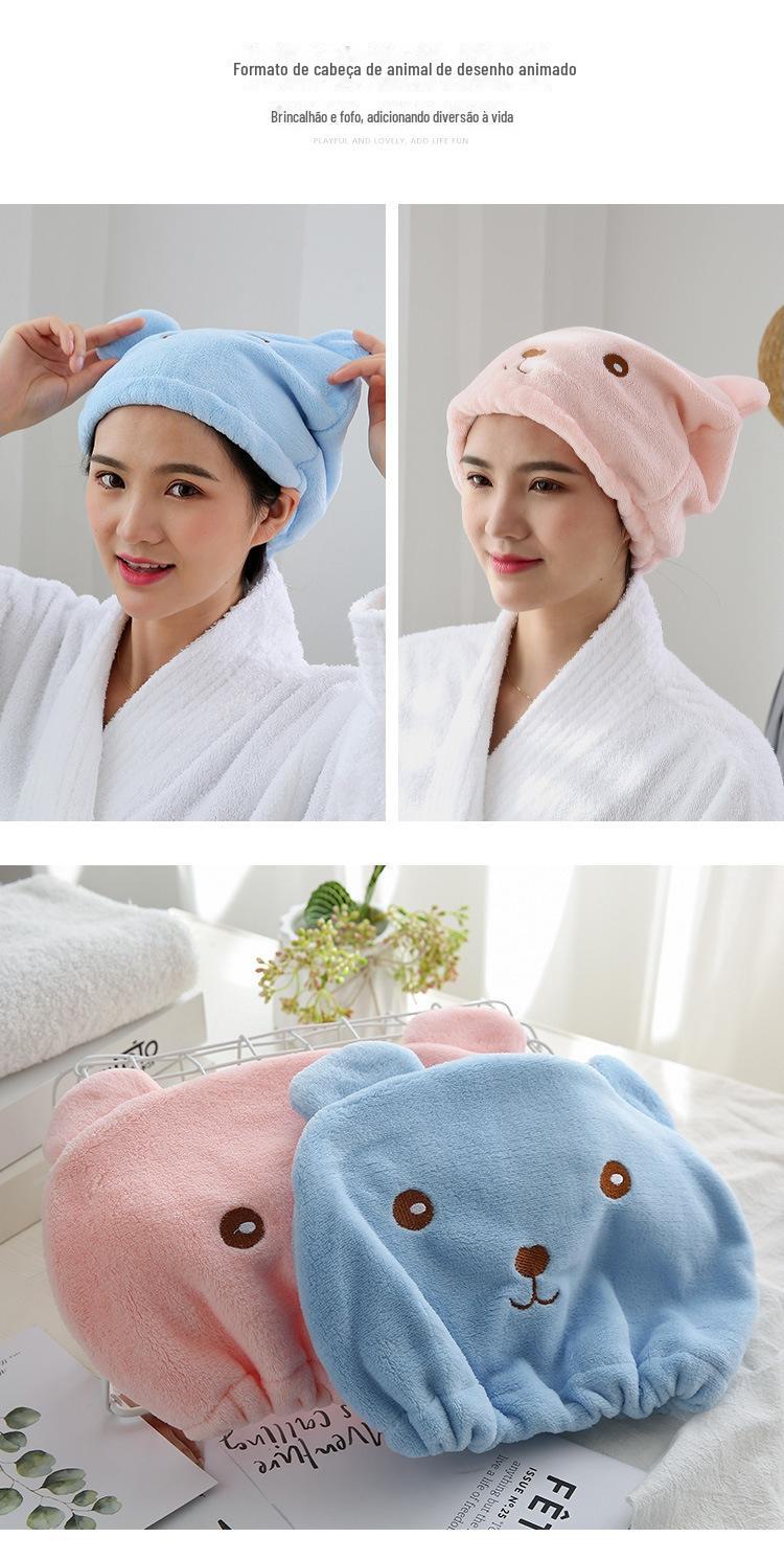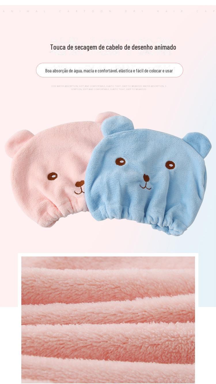 Cabelo-livre Cartoon Bear Thickened Hair Drying Cap Super Absorvente de secagem rápida Toalha Shower Cap Estilo coreano Cabelo Wipe Headscarf
