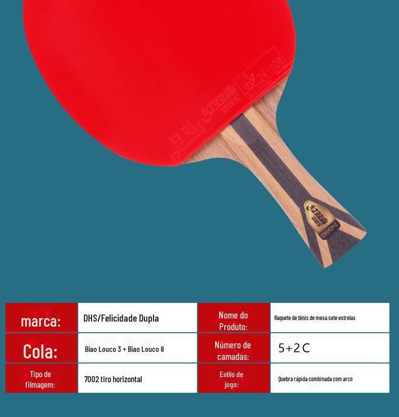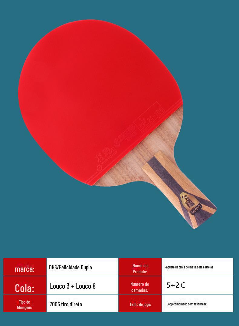 Raquete de tênis de mesa de felicidade dupla tiro único adulto crianças escola primária estudante raquete soldado bola iniciante tiro direto tiro horizontal 5 estrelas