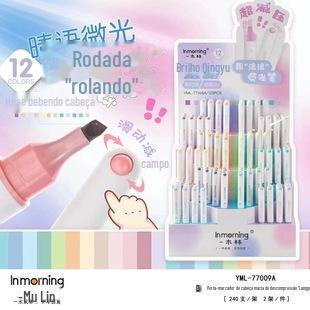 Yimulin nova caneta fluorescente para alívio do estresse, 12 cores, caneta fluorescente redonda, super macia, proteção para os olhos, caneta marcadora colorida