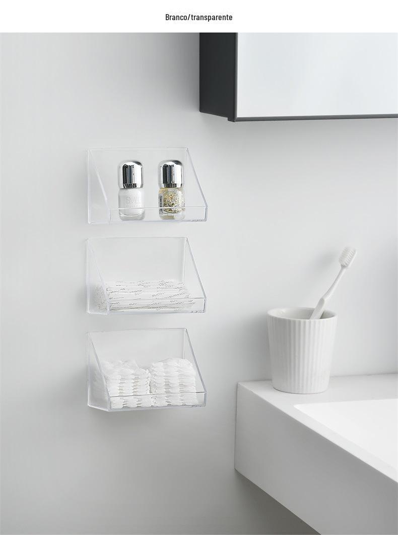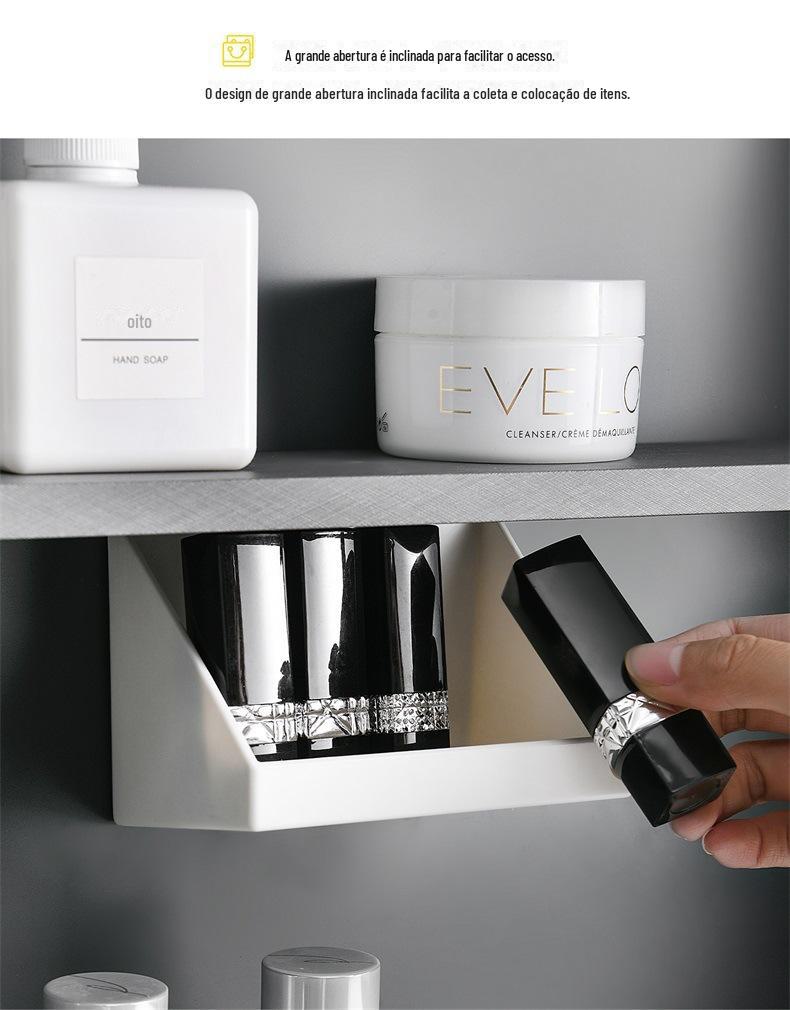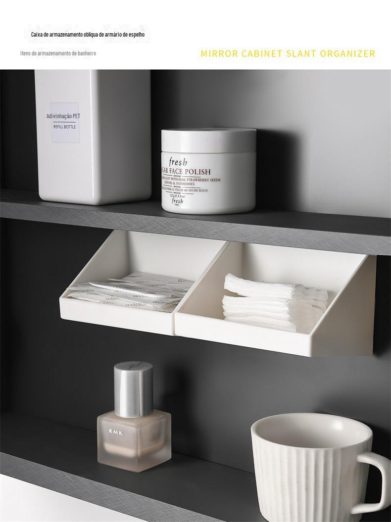Punch-free simples parede montada armário espelho oblíquo boca caixa de armazenamento divisória colar bisel caixa de armazenamento Expansão Espaço Classificação