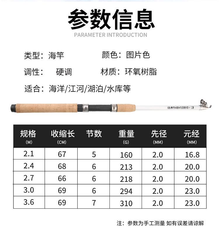 Vara de arremesso de vara de pesca de guarda de pesca 2,1 metros 3,6 metros vara de pesca branca transfronteiriça em estoque atacado vara de arremesso de longa distância de 5 camadas