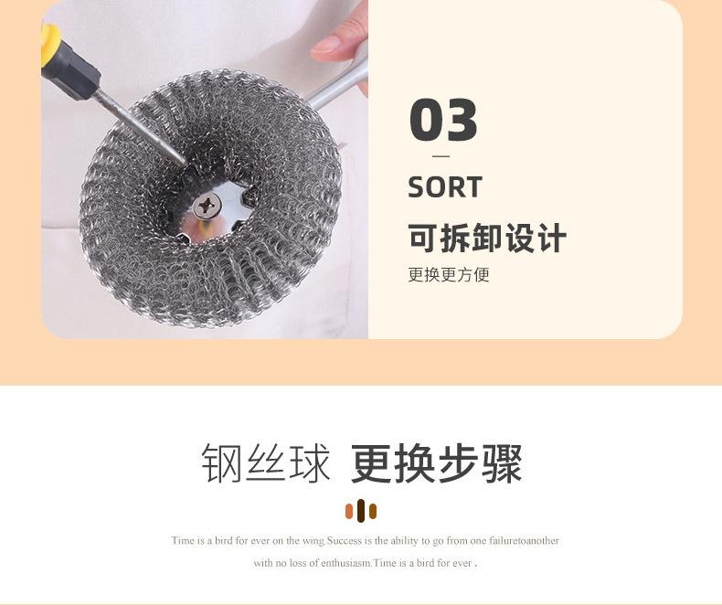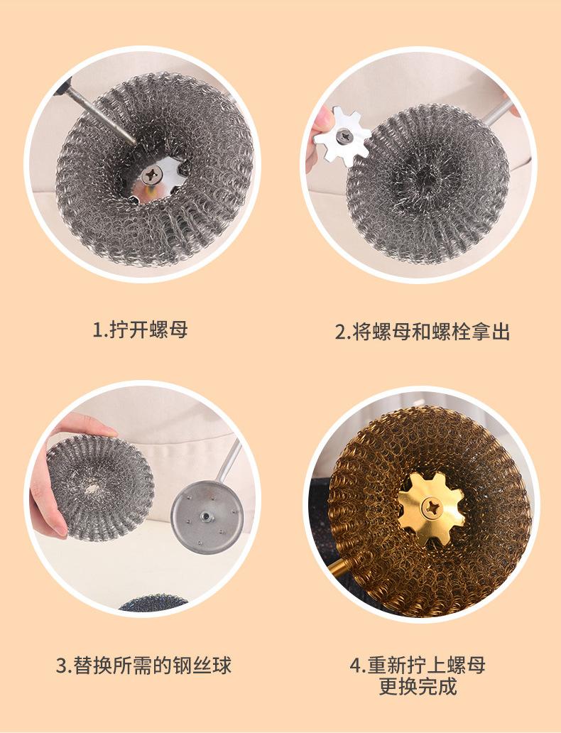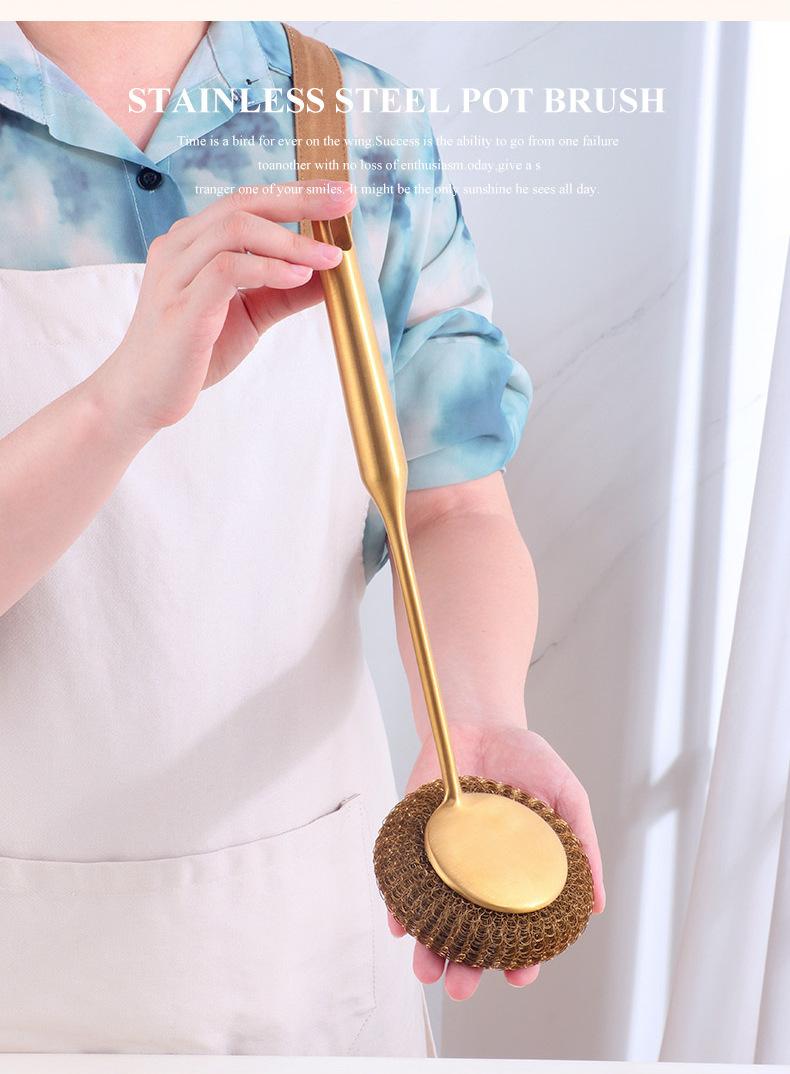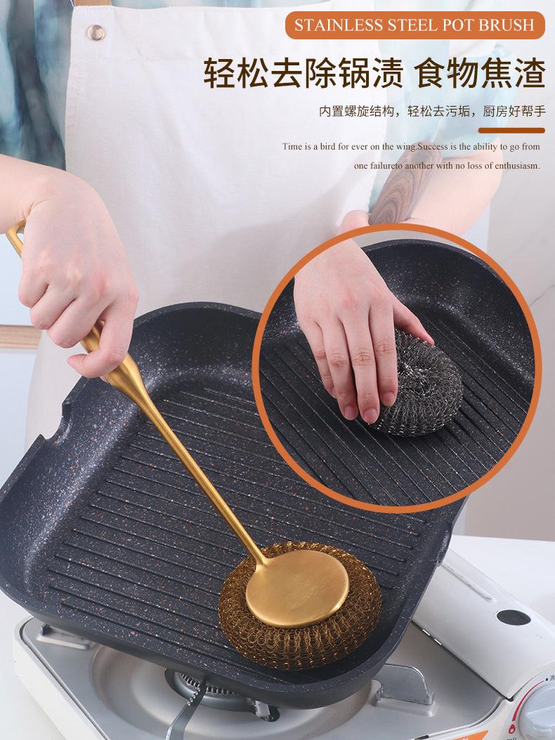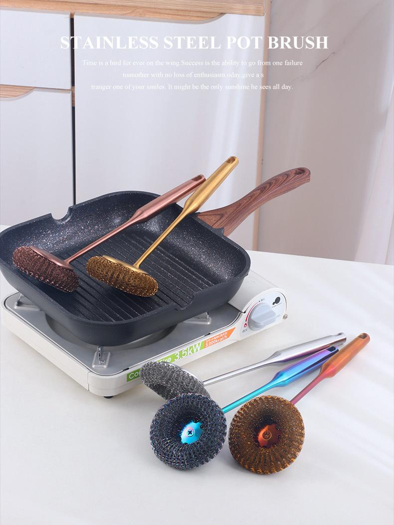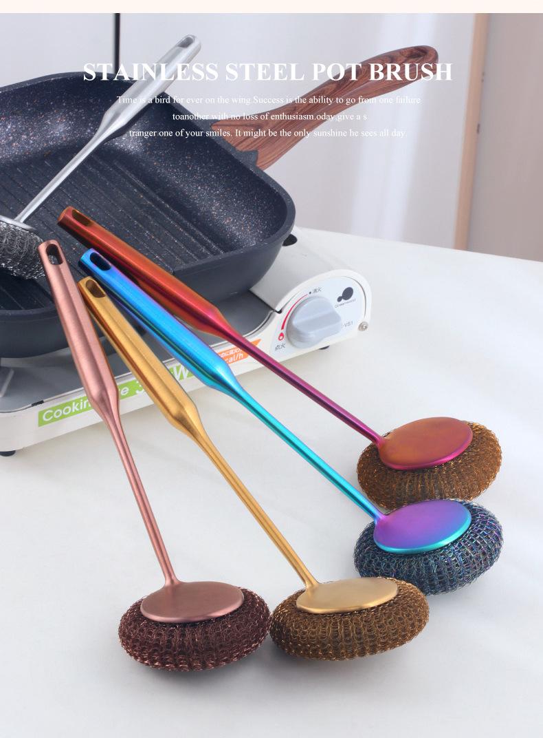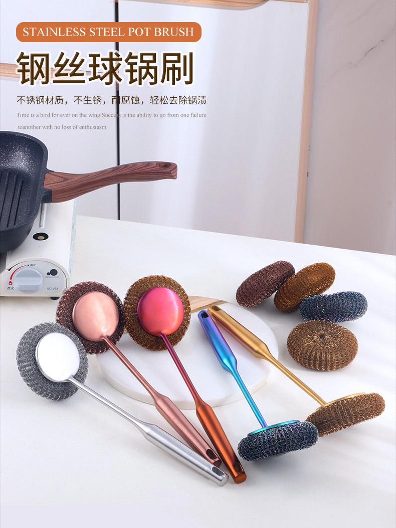 304 aço inoxidável escova de panela escova de limpeza doméstica alça longa escova de panela de limpeza de cozinha tigela de panela esfera de aço oco
