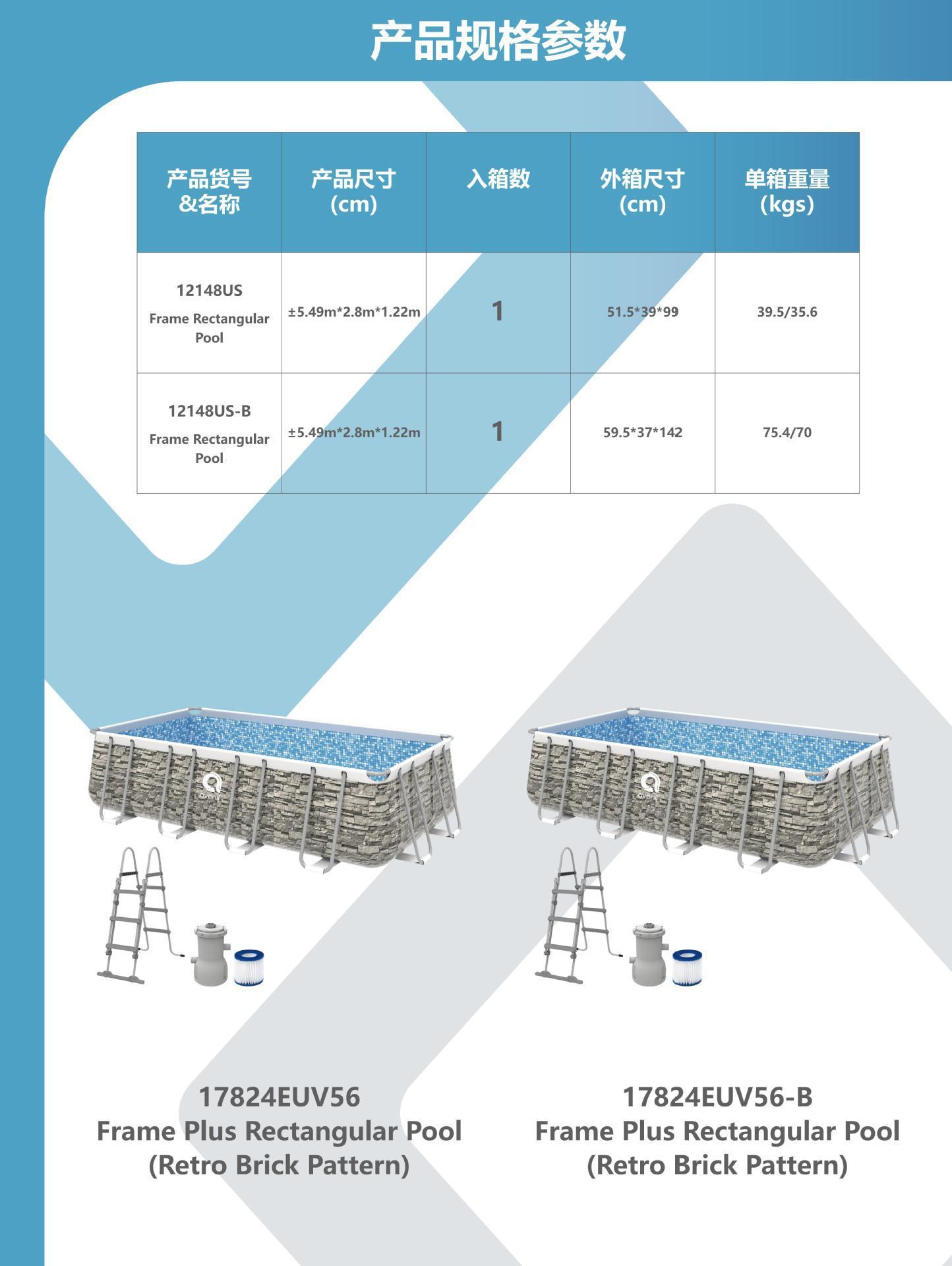 Rectangular flat steel bracket pool (European standard) 5.49m * 2.8m * 1.22m 12147EU