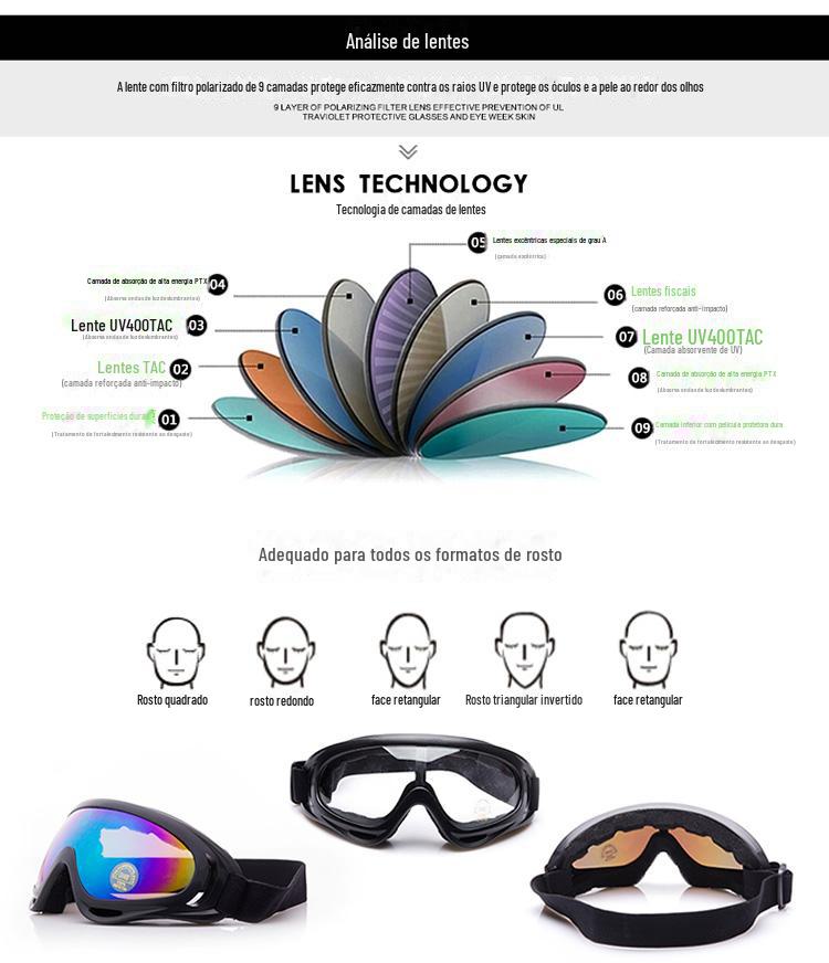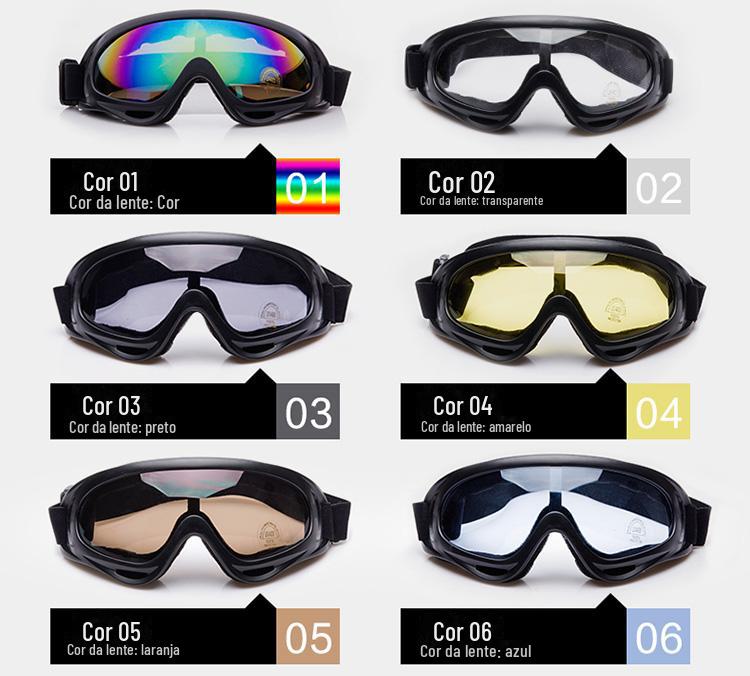 Cores das lentes: preto, cinza, transparente, colorido, laranja, amarelo, marrom